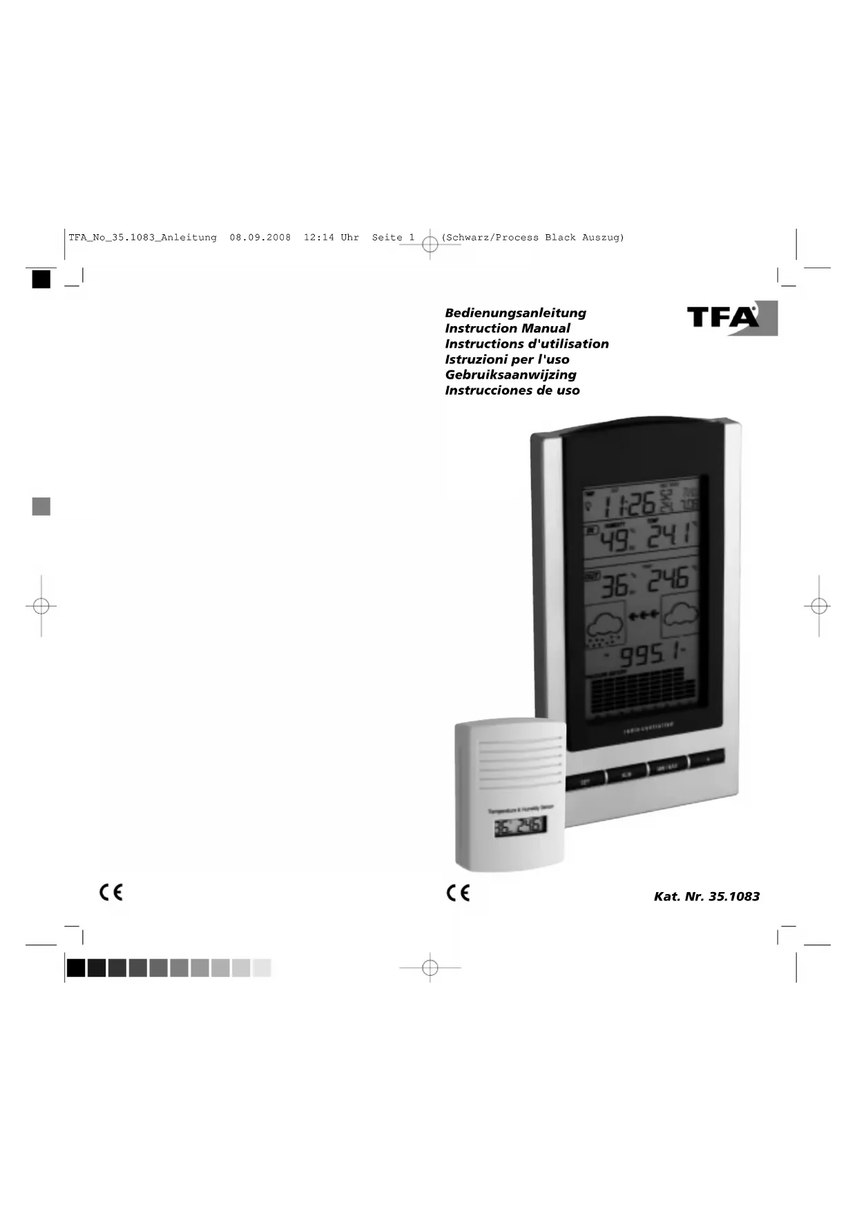 Kat. Nr. 35.1083 Bedienungsanleitung Instruction Manual Instructions d'utilisation Istruzioni per l'uso Gebruiksaanwijzing Instrucciones de uso TFA_No_35.1083_Anleitung 08.09.2008 12:14 Uhr Seite 1 (Schwarz/Process Black Auszug)GAIA – Funk-Wetterstation