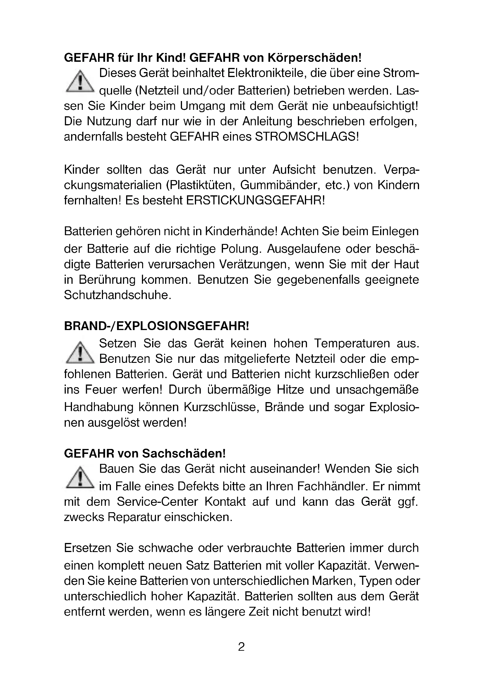 2. Nehmen Sie keine Eingriffe in das Gerät vor, da sonst