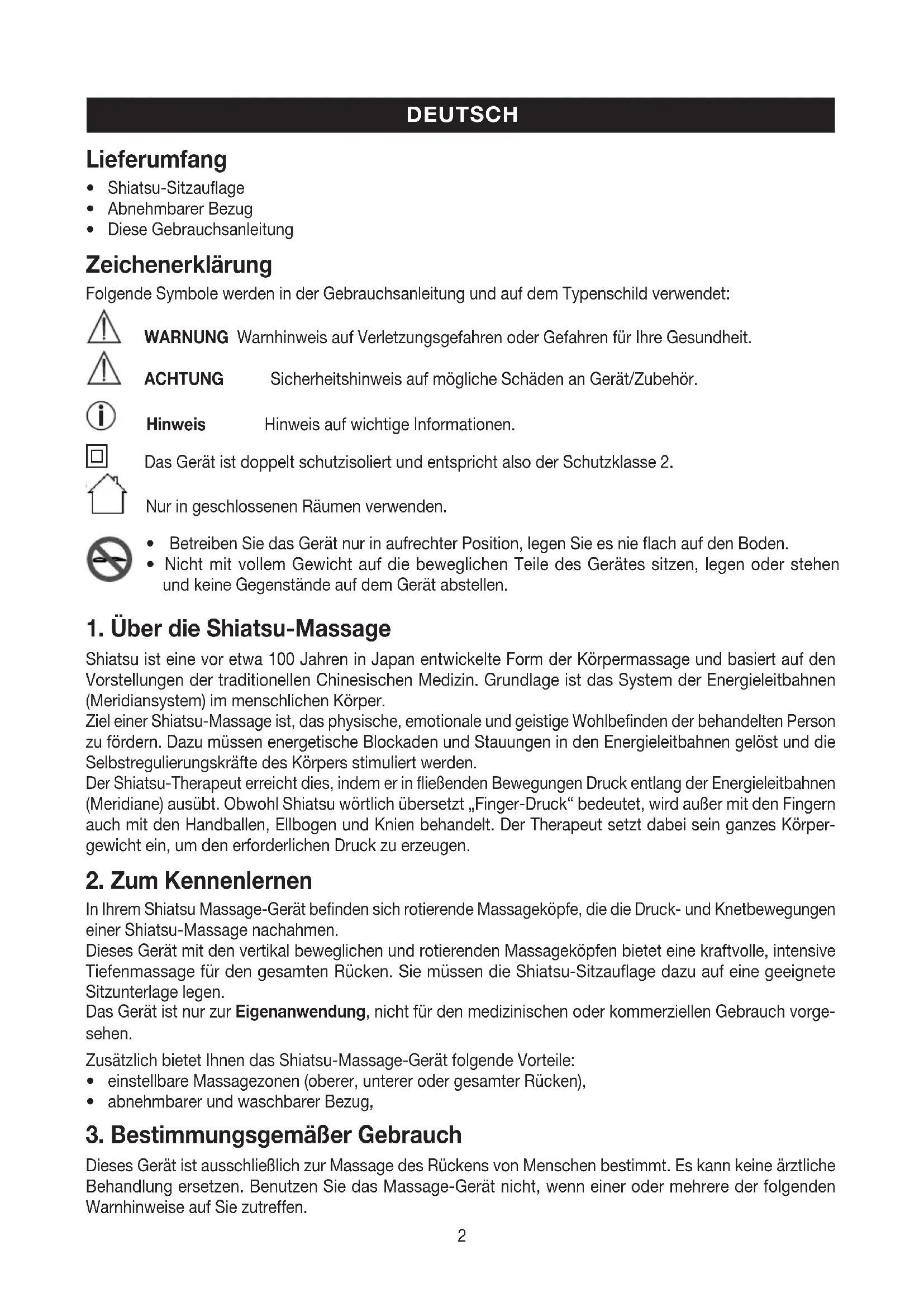 Shiatsu-Sitzaufl age Gebrauchsanleitung