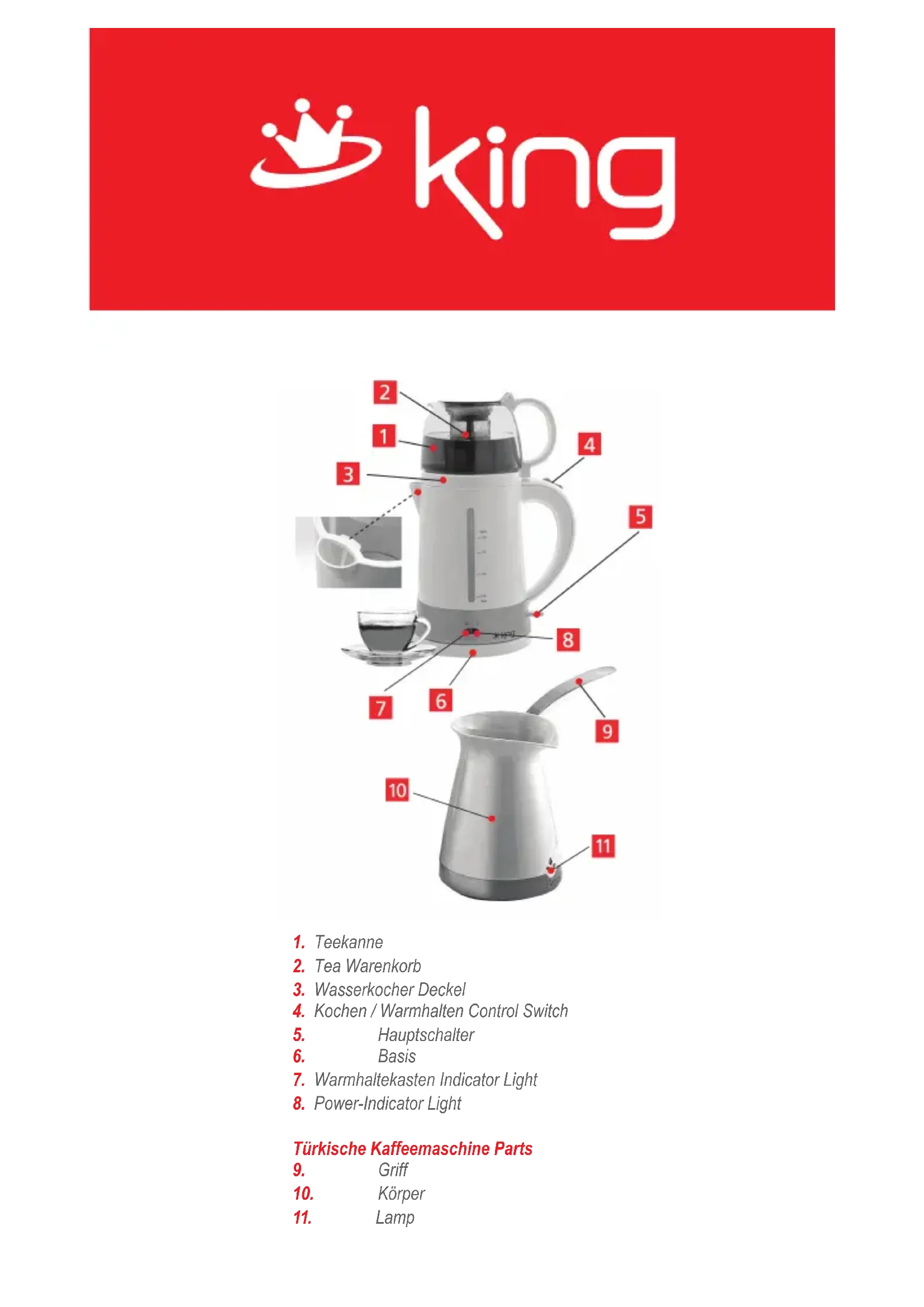 Laden Sie die Anleitung für Ihr Kaffeemaschine kostenlos im PDF-Format! Finden Sie Ihr Handbuch K 8288 Duo Set - KING und nehmen Sie Ihr elektronisches Gerät wieder in die Hand. Auf dieser Seite sind alle Dokumente veröffentlicht, die für die Verwendung Ihres Geräts notwendig sind. K 8288 Duo Set von der Marke KING.
