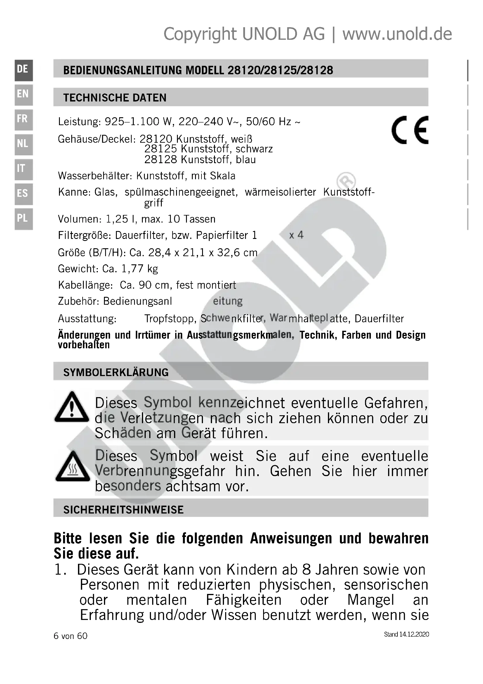 Stand 14.12.2020 15 von 60 Copyright UNOLD AG | www.unold.de16 von 60 Stand 14.12.2020