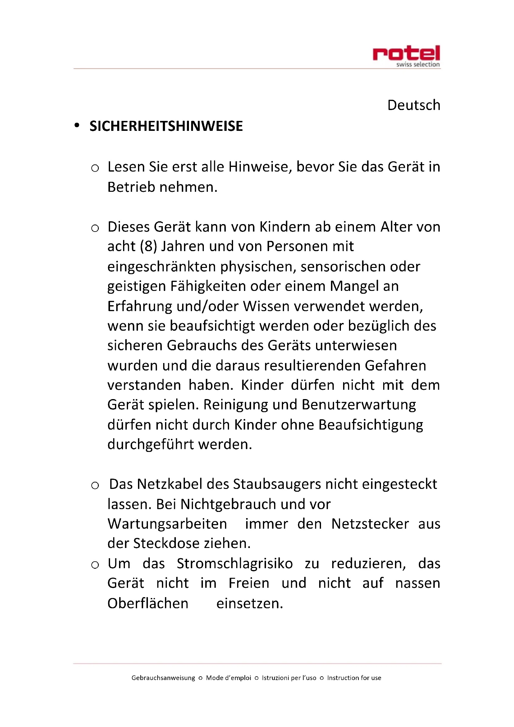 Für eine sachgerechte Entsorgung ist das Gerät dem Fachhändler, der Servicestelle oder der Firma Rotel AG zurückzugeben.