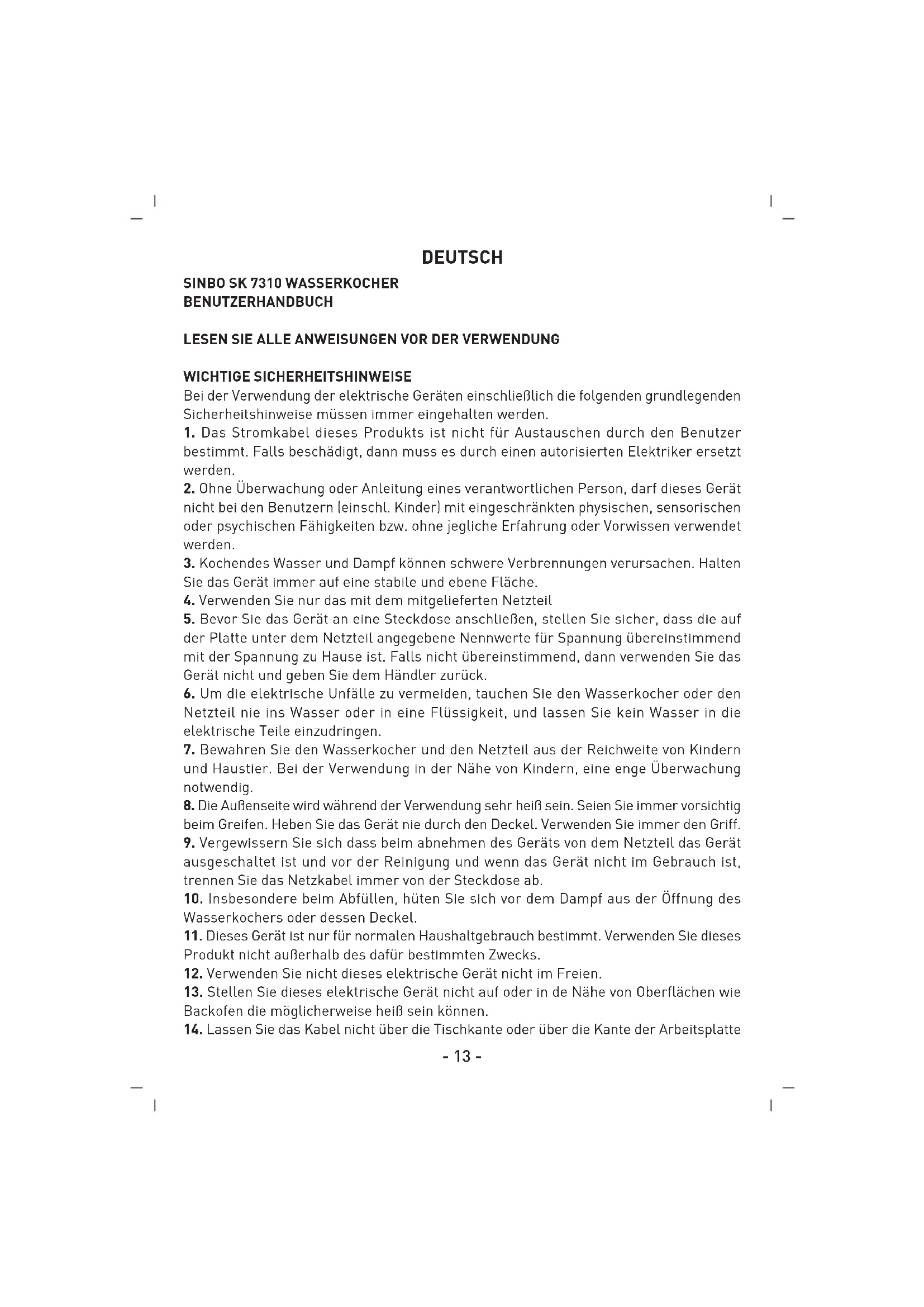 SK7310C - Wasserkocher SINBO - Kostenlose Bedienungsanleitung