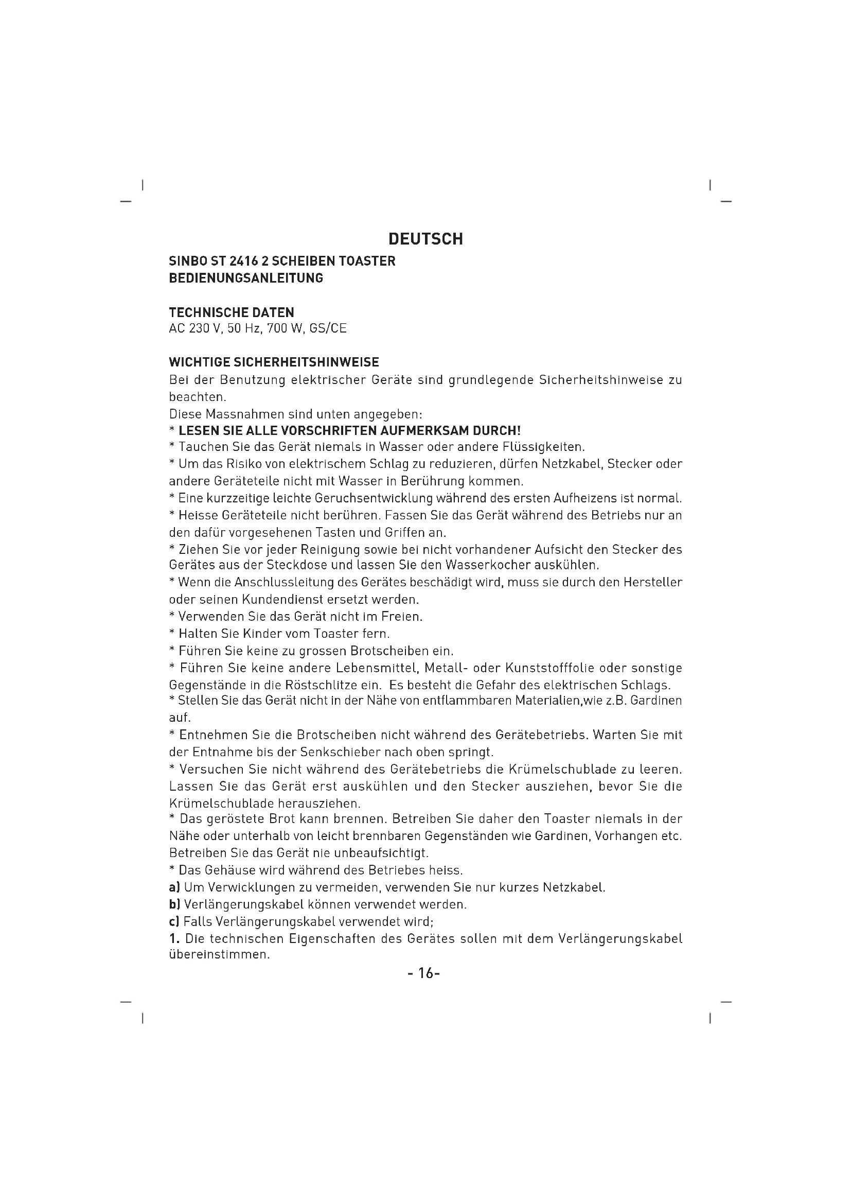 BEDIENUNGSANLEITUNG ST 2416 SINBO