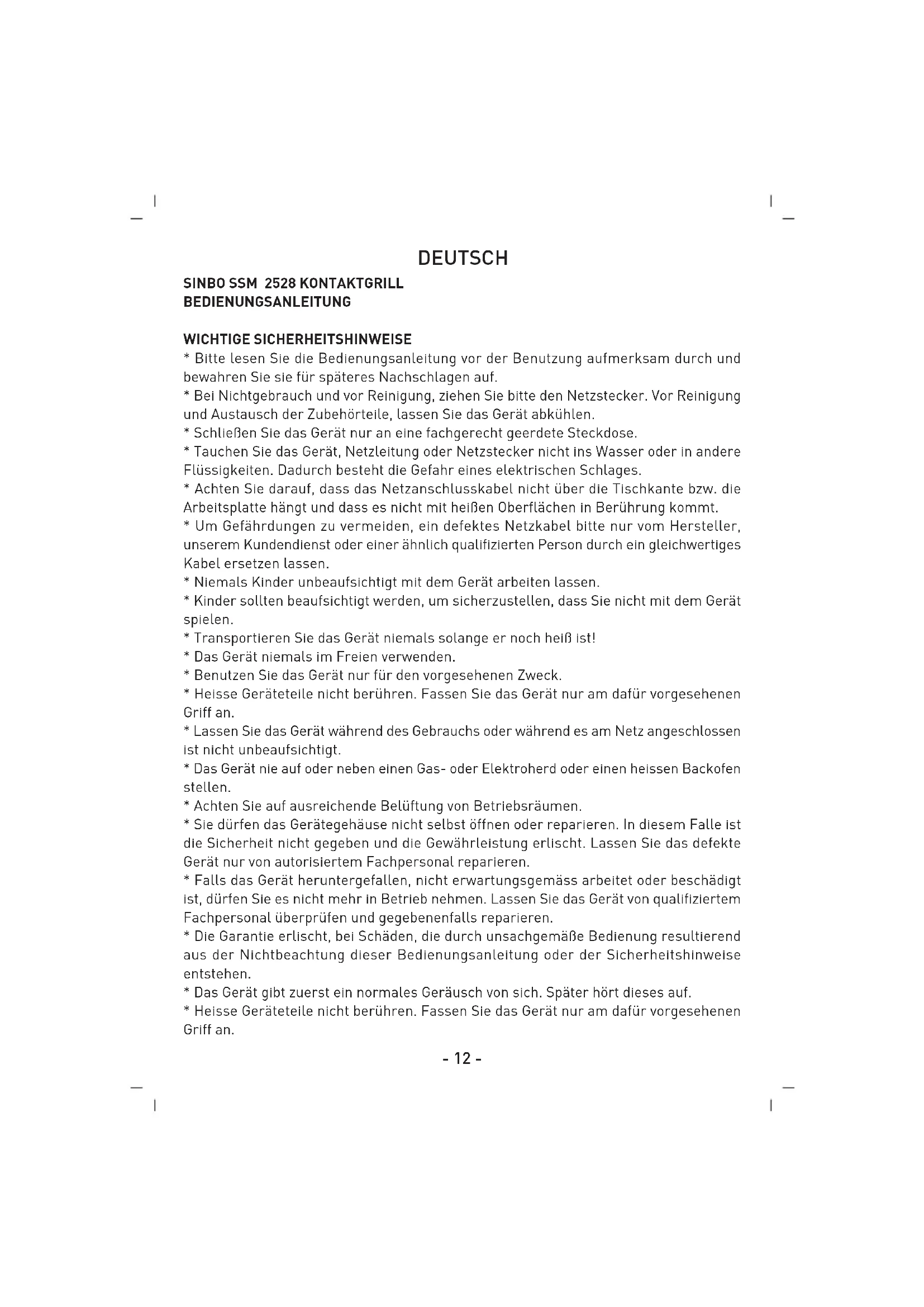 SINBO SSM 2528 KONTAKTGRILL BEDIENUNGSANLEITUNG