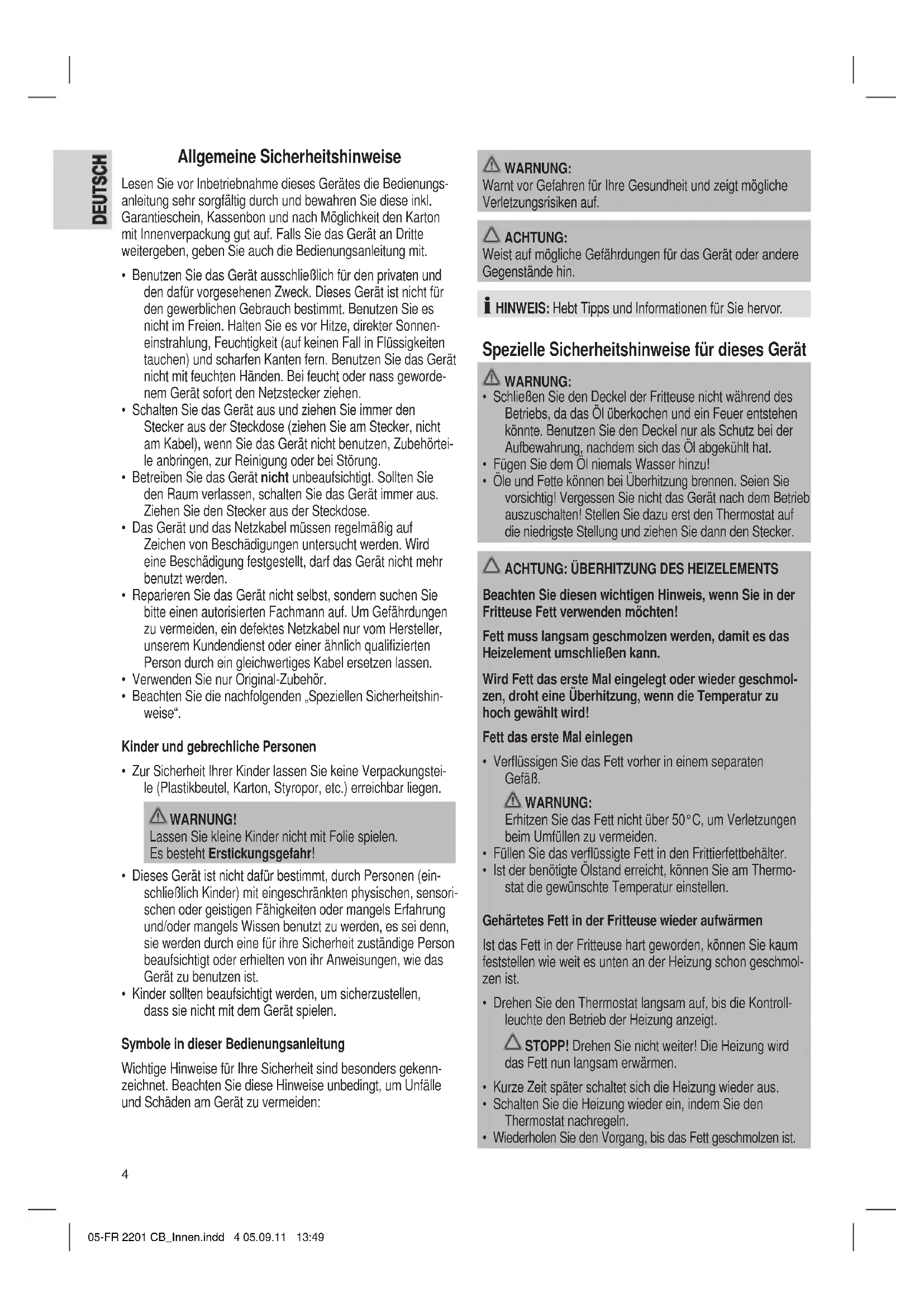 - Wiederholen Sie den Vorgang, bis das Fett geschmolzen ist. 05-FR 2201 CB_Innen.indd 4 05.09.11 13:495 DEUTSCH