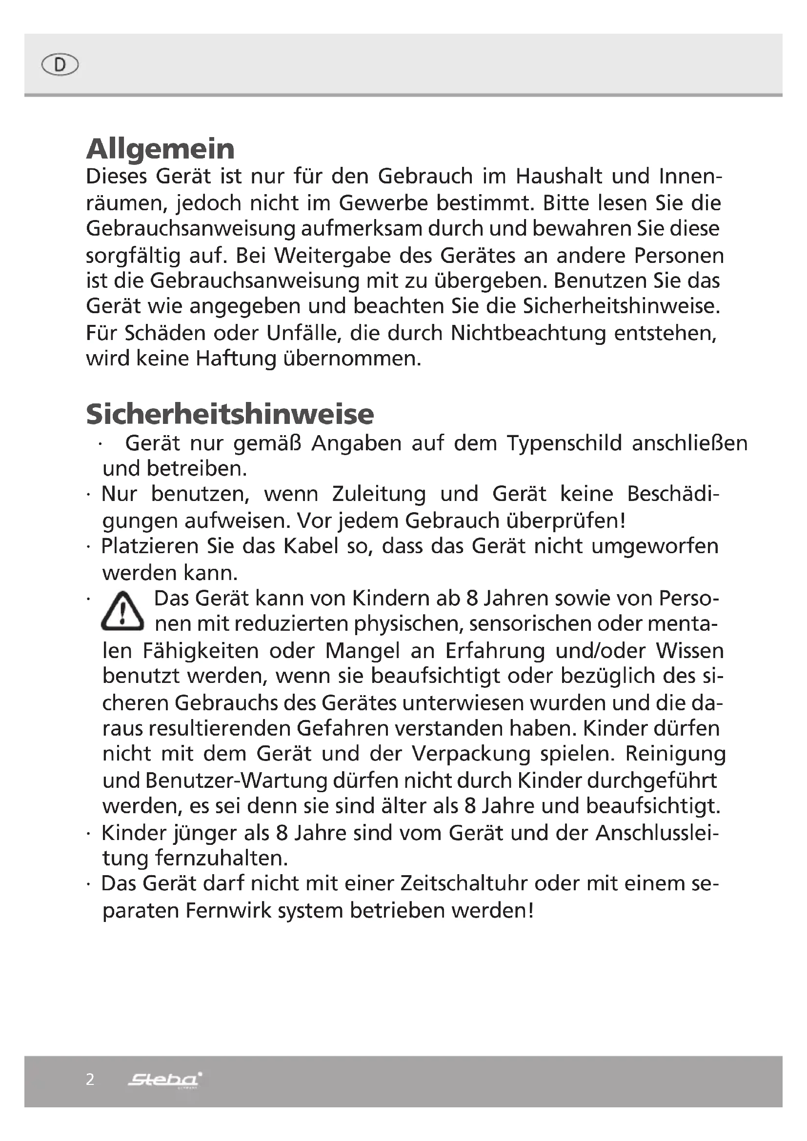 BEDIENUNGSANLEITUNG LB 9 STEBA