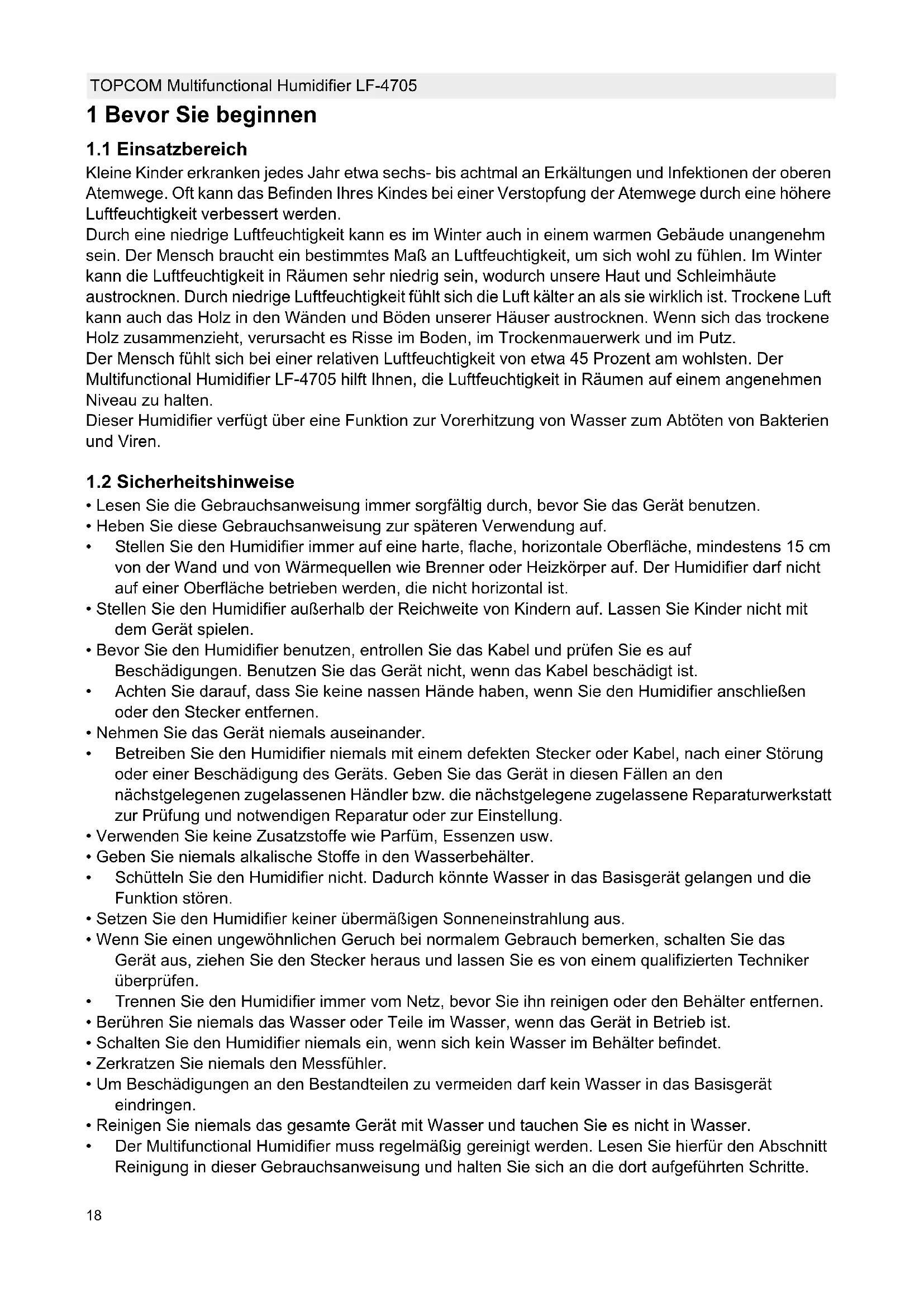 b21 DEUTSCH TOPCOM Multifunctional Humidifier LF-4705Nach einigen Minuten fühlt sich der Nebel lauwarm an. Der Nebel wird niemals heiß!