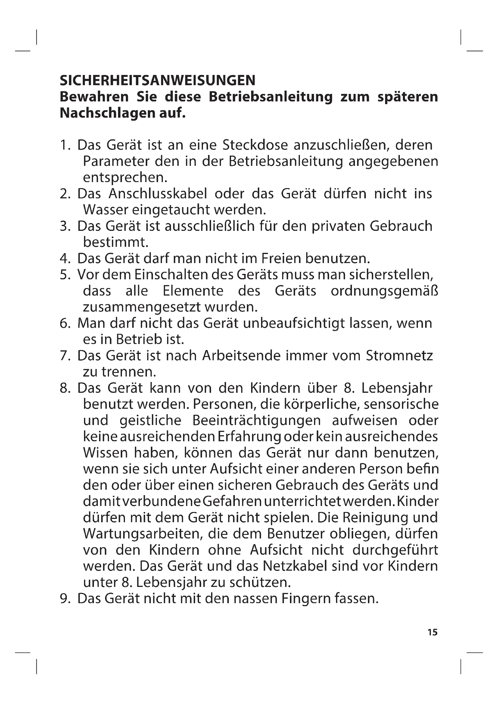 3. Das Gerät ist ausschließlich für den privaten Gebrauch