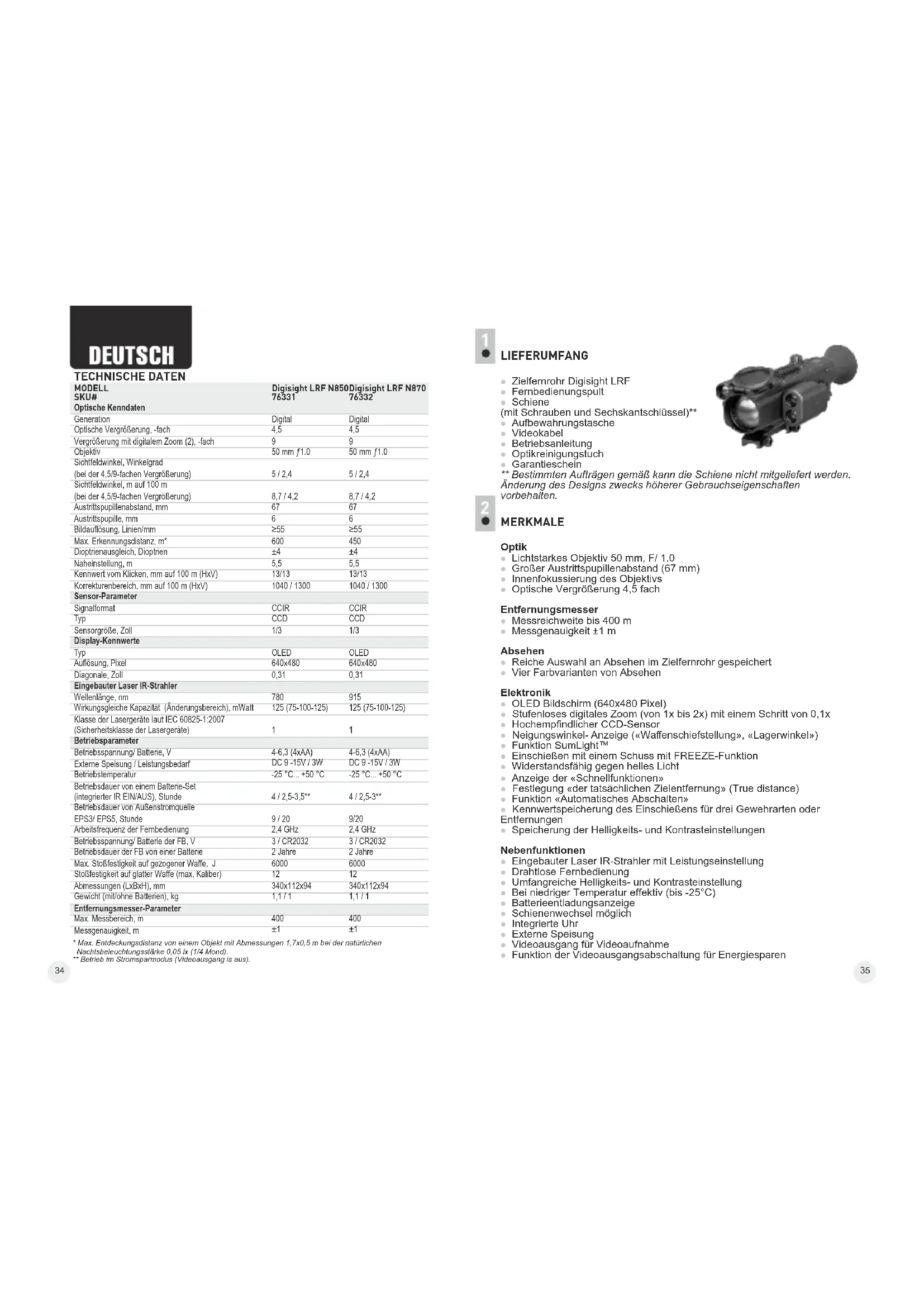 | MODELLSKU# | Digisight LRF N850 | Digisight LRF N870 |