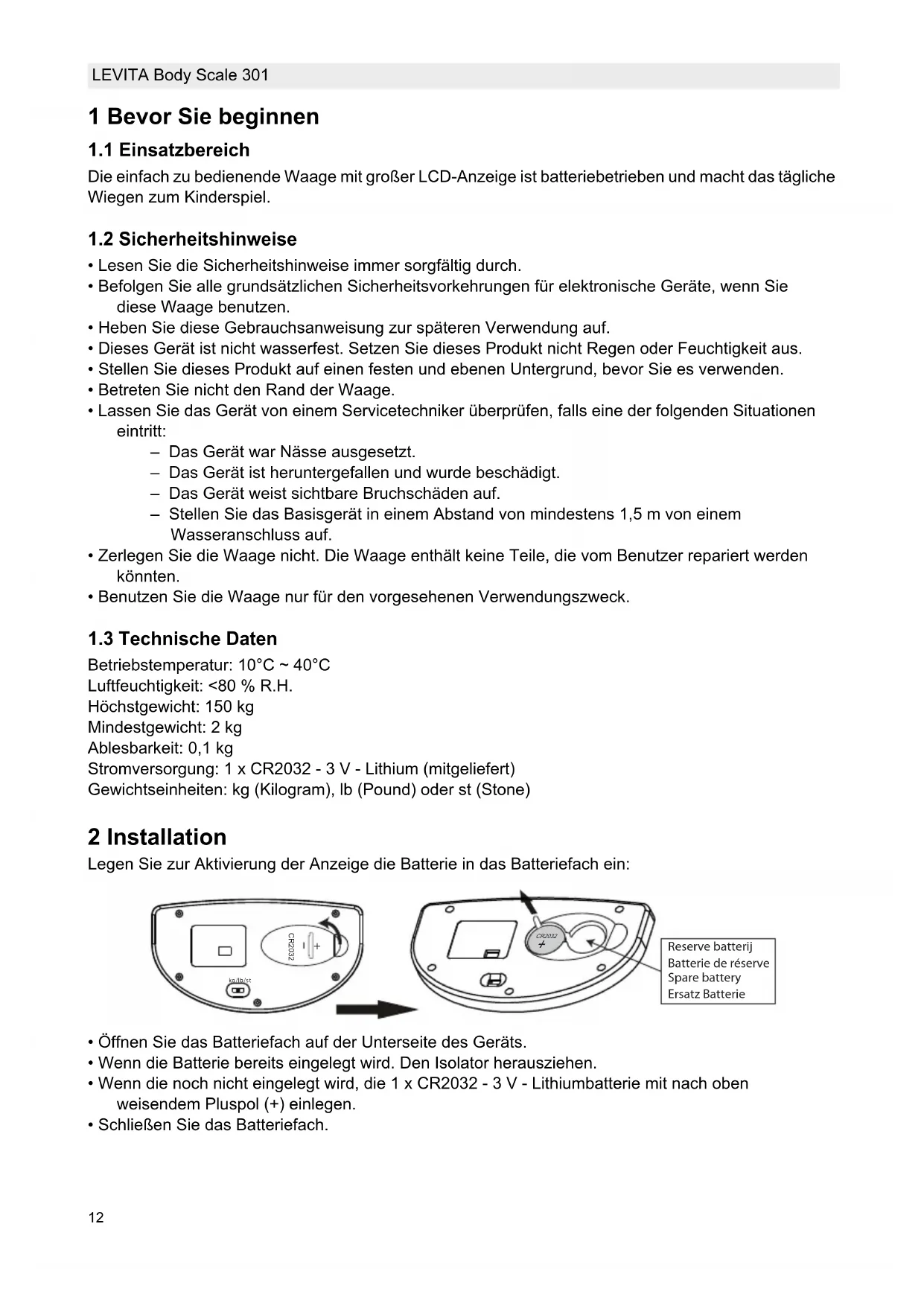 BEDIENUNGSANLEITUNG Body Scale 301 Levita
