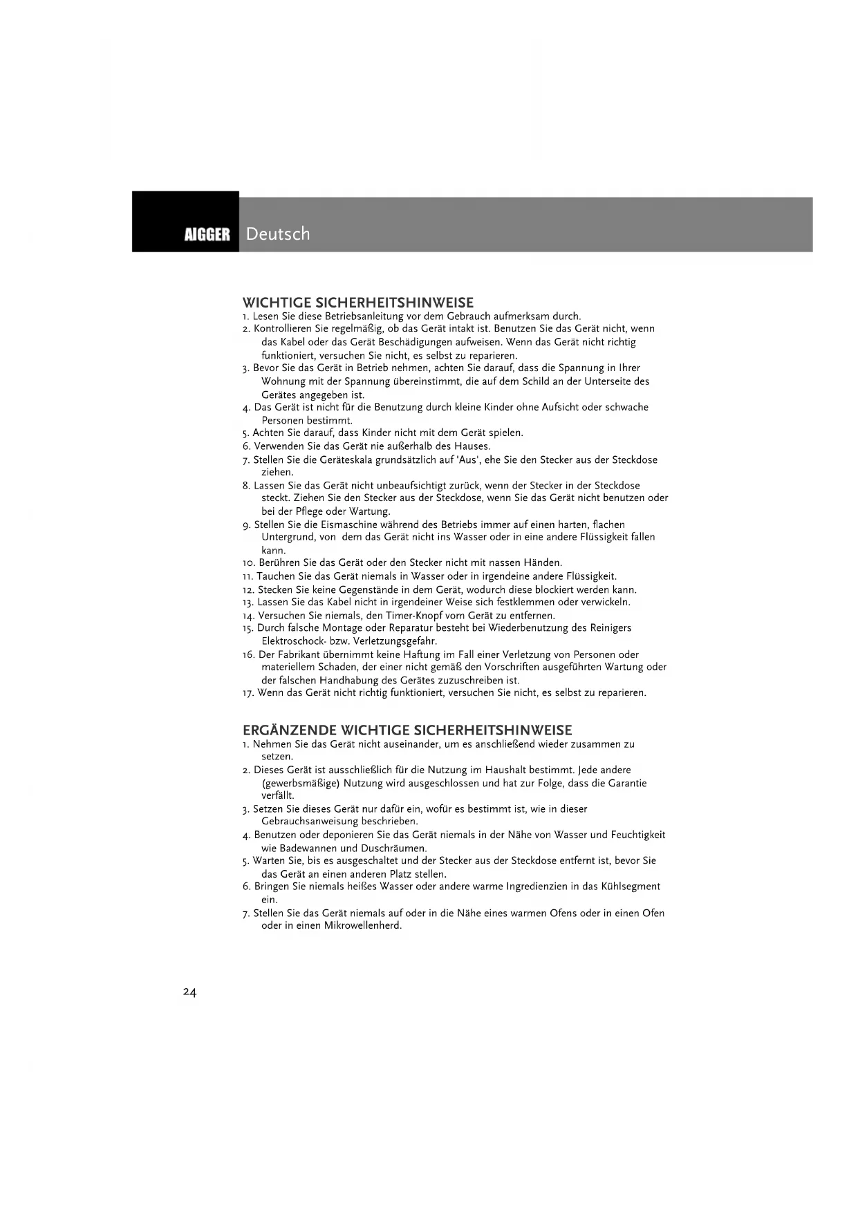 ERGÄNZENDE WICHTIGE SICHERHEITSHINWEISE 24