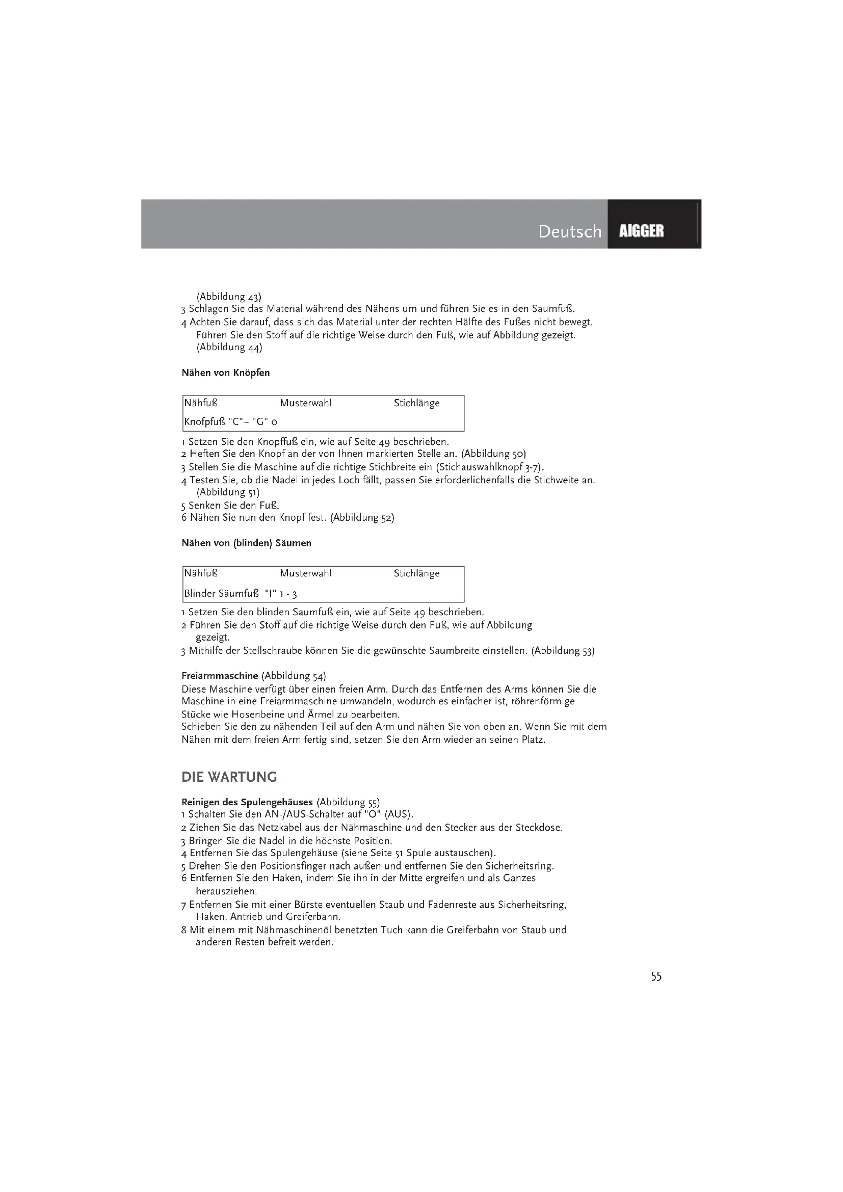 Freiarmmaschine (Abbildung 54)