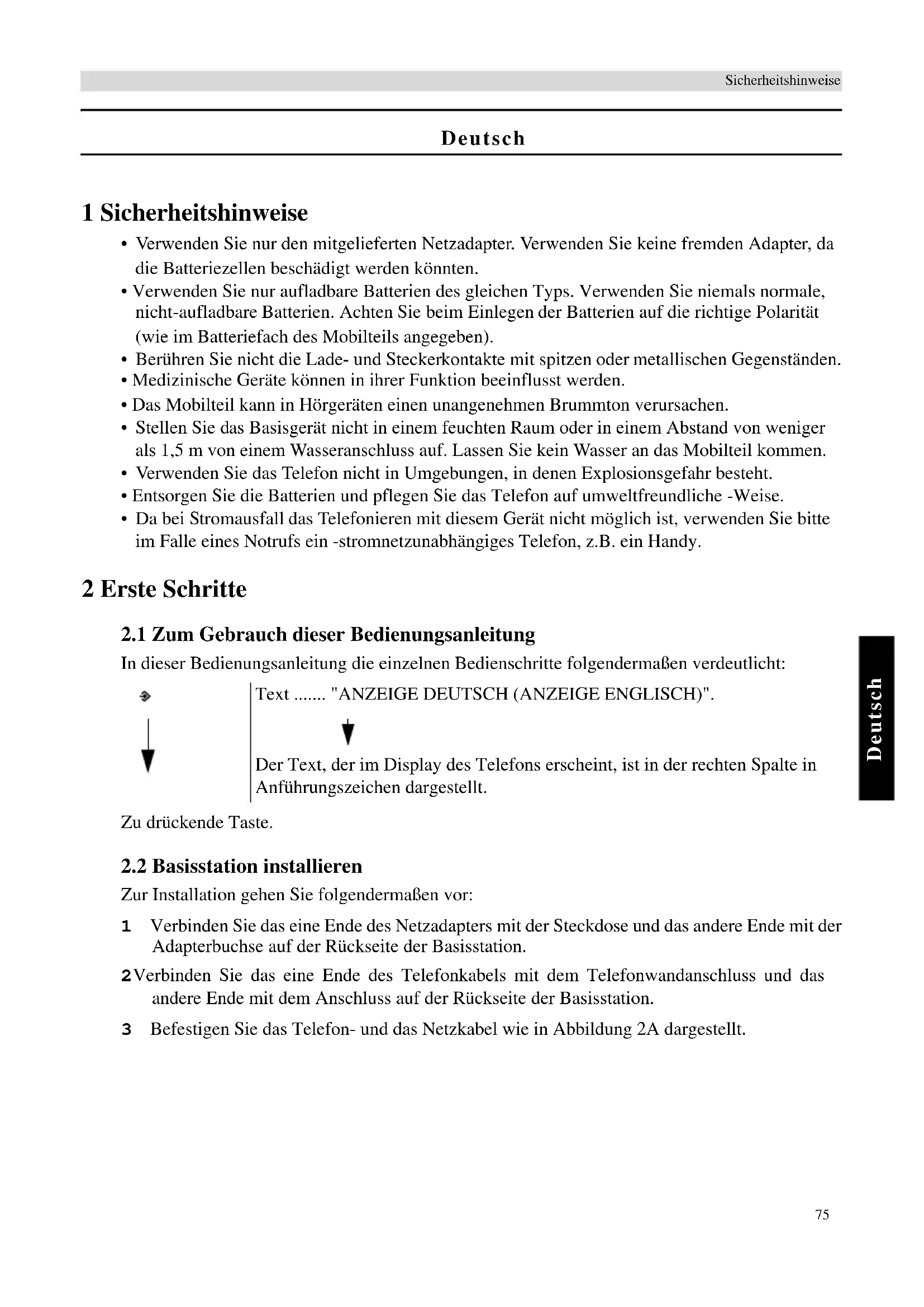 - Da bei Stromausfall das Telefonieren mit thisem Gerät nicht möglich ist, verwenden Sieitte im Falle eines Notrufs ein -stromnetzunabhängiges Telefon, z.B. ein Handy.