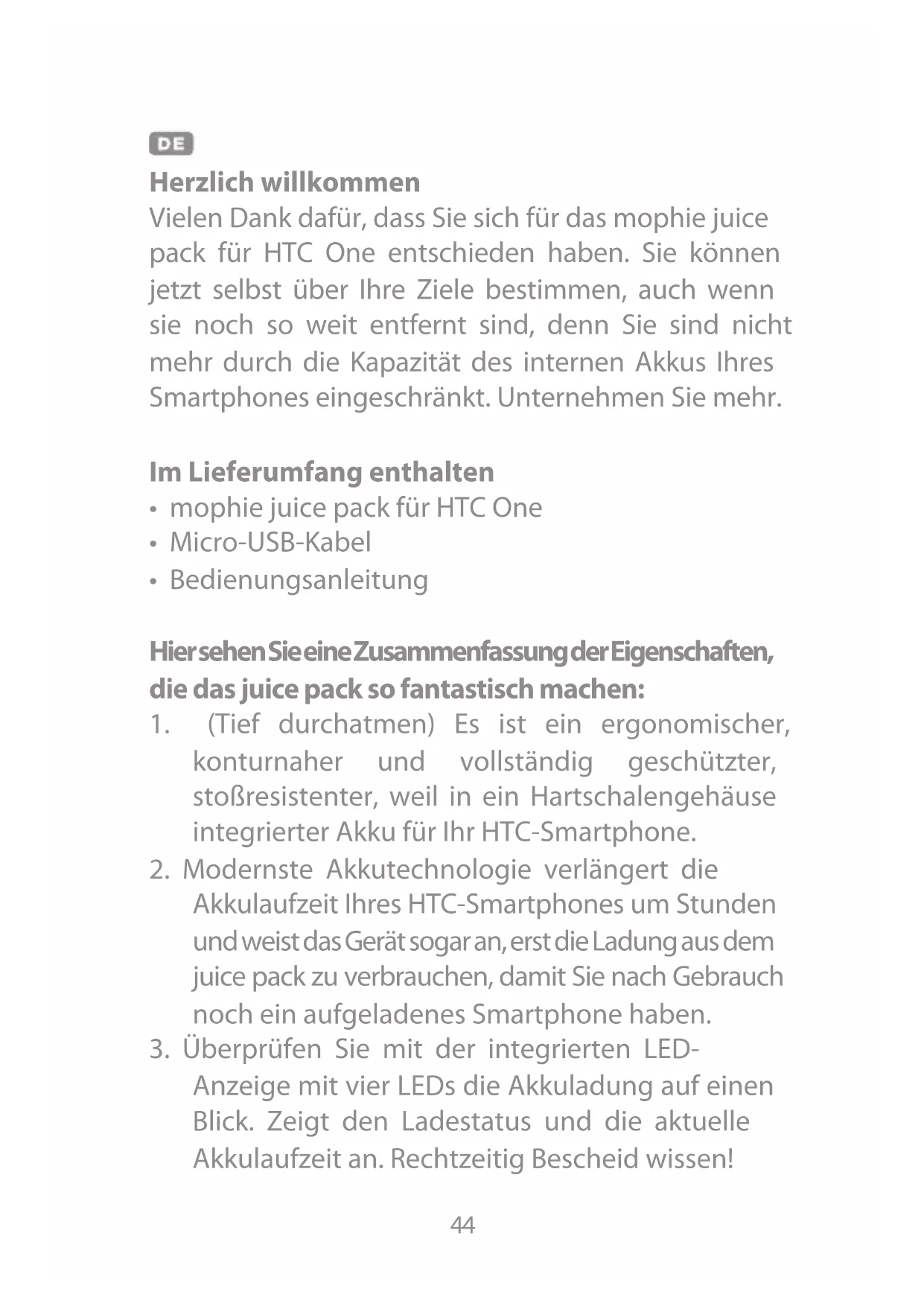 BEDIENUNGSANLEITUNG Juice pack for HTC One Mophie