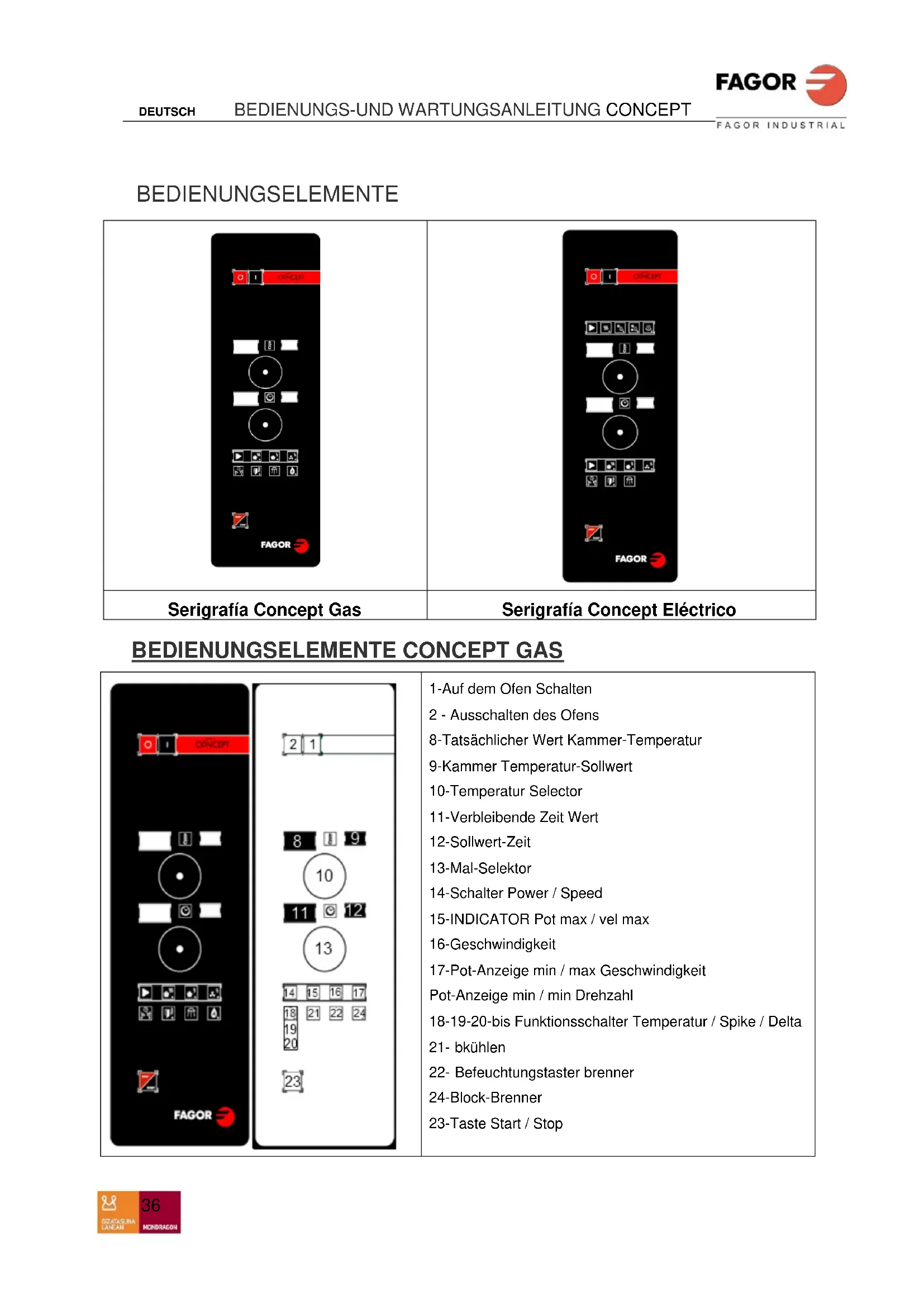 FAGOR INDUSTRIAL S. COOP. B\ Santxolopetegi 22 aptdo 17 20560 Oñati (Gipuzkoa/Spain)DEUTSCH BEDIENUNGS-UND WARTUNGSANLEITUNG CONCEPT