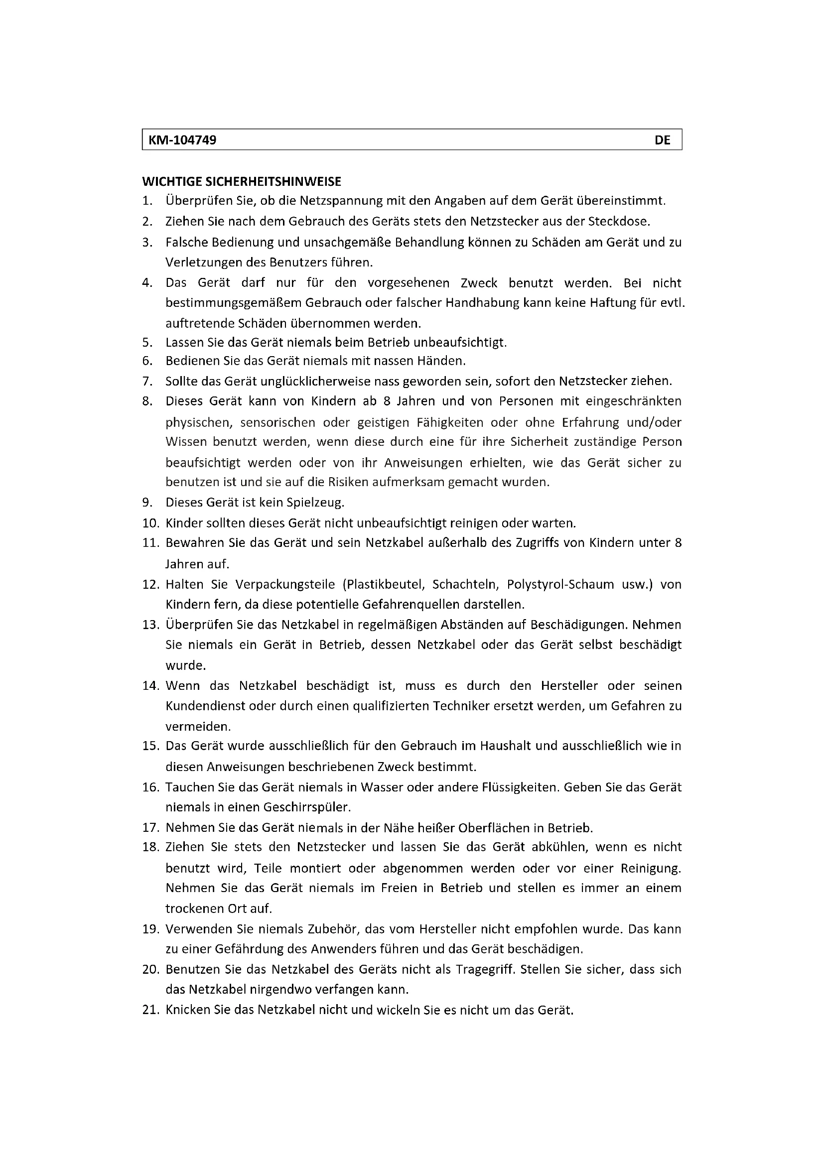 KM104749.1 - Küchenmaschine WAVES - Kostenlose Bedienungsanleitung