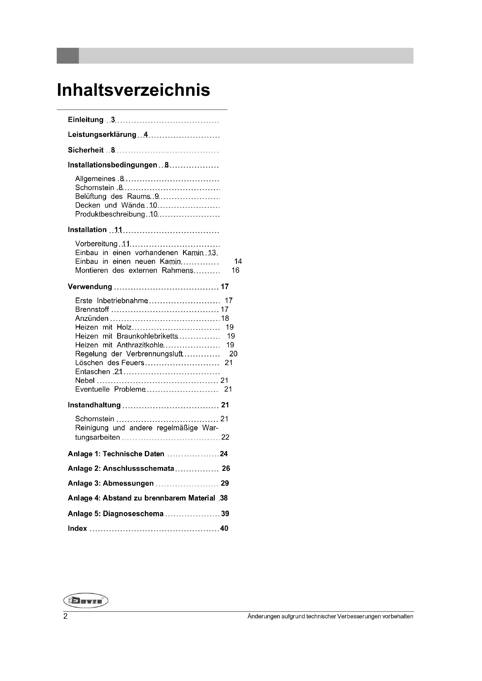 These Anleitung erläutert, wie Sie das DOVRE-Heizgerät sicheren installieren, verwenden und warten. Wenn Sie weitergehende Informationen und technische Daten benötigen oder ein Installationsproblem haben, wenden Sie sichitte zuerst an ihren Lieferanten.