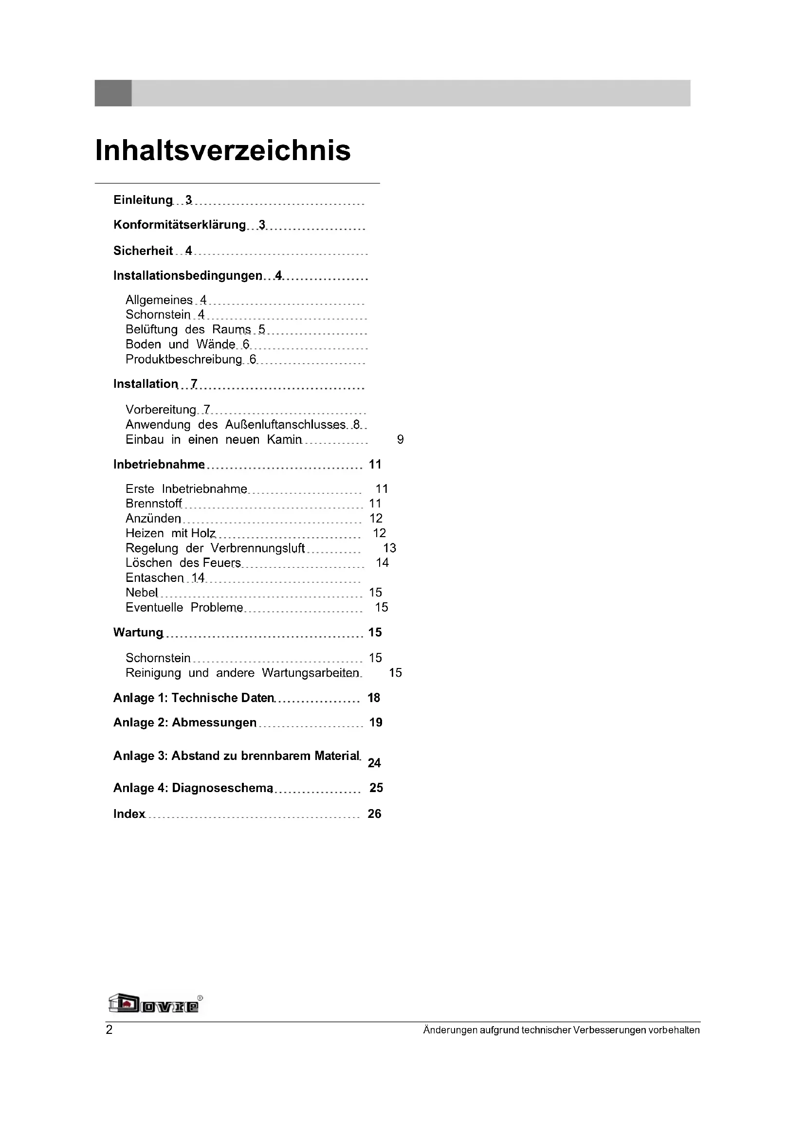 These Anleitung erläutert, wie Sie das DOVRE-Heizgerät sicher installieren, verwenden und warten. Wenn Sie weitergehende Informationen und technische Daten benötigen oder ein Installationsproblem haben, wenden Sie sichitte zuerst an ihren Lieferanten.