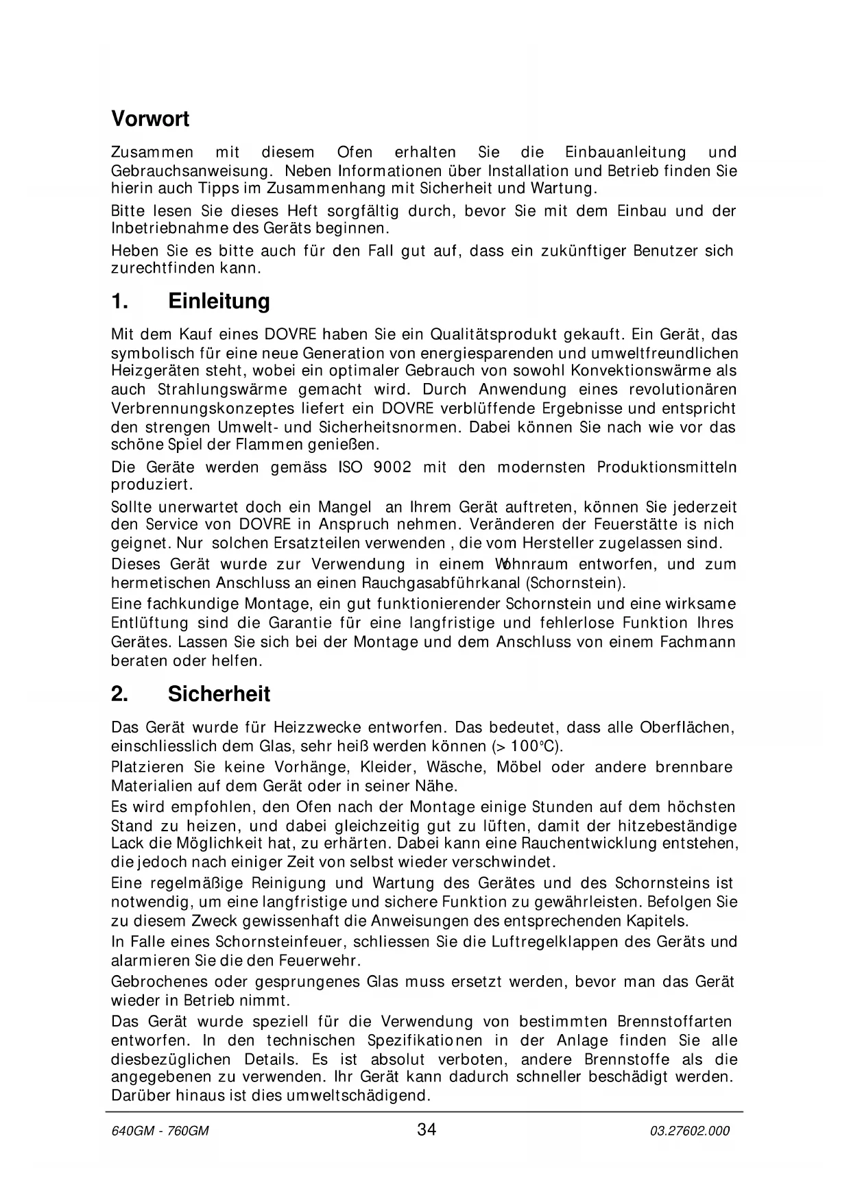 BEDIENUNGSANLEITUNG 640 GM DOVRE
