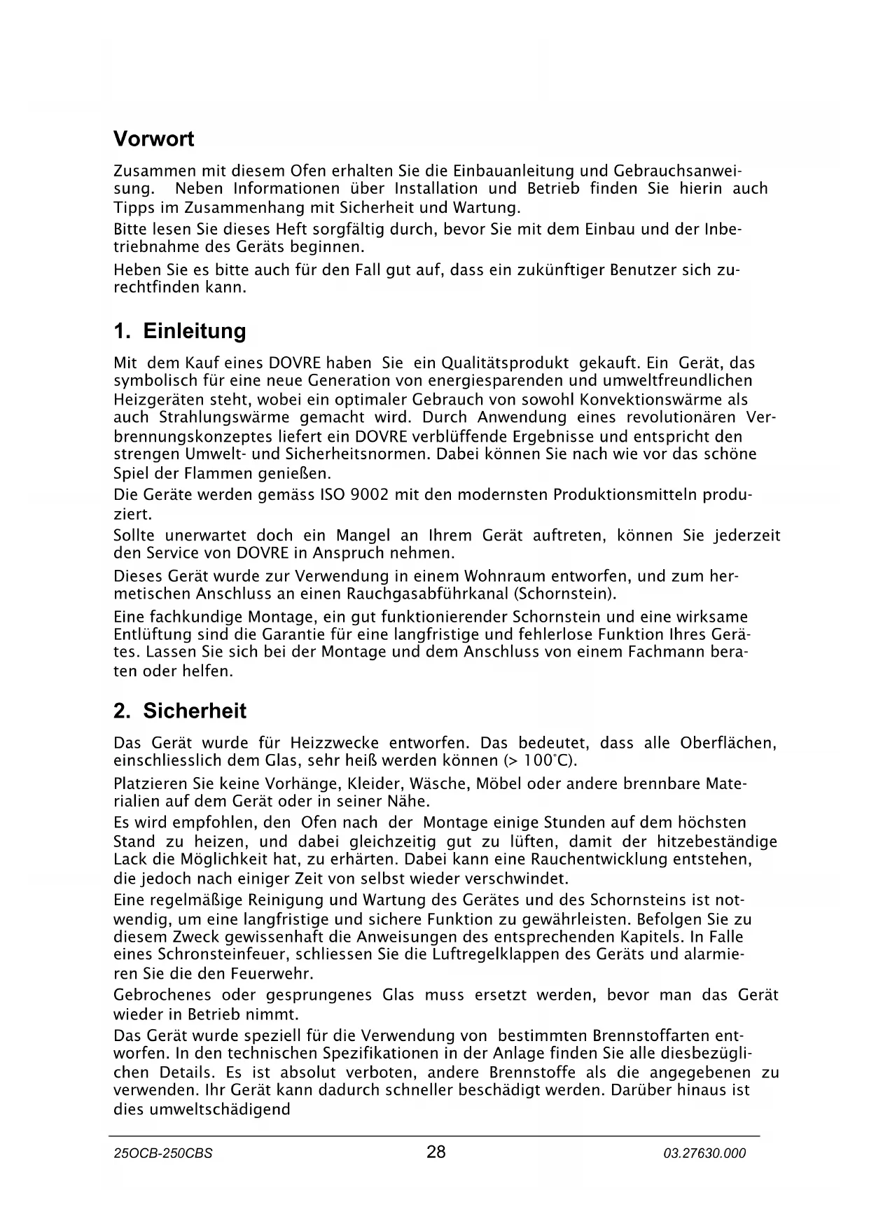 Mit dem Kauf eines DOVRE haben Sie ein Qualitätssprodukt gekauft. Ein Gerät, das symbolisch für eine neue Generation von energiesparenden und umweltfreundlichen Heizgeräten steht, wobei ein optimaler Gebrauch von sowohl Konvektionswärme als auch Strahlungswärme gemacht wird. Durch Anwendung eines revolutionären Verbrennungskonzeptes liefert ein DOVRE verblüffende Ergebnisse und entspricht den strengen Umwelt- und Sicherheitsnormen. Dabei konnen Sie nach wie vor das schon Spiel der Flammen genieten.