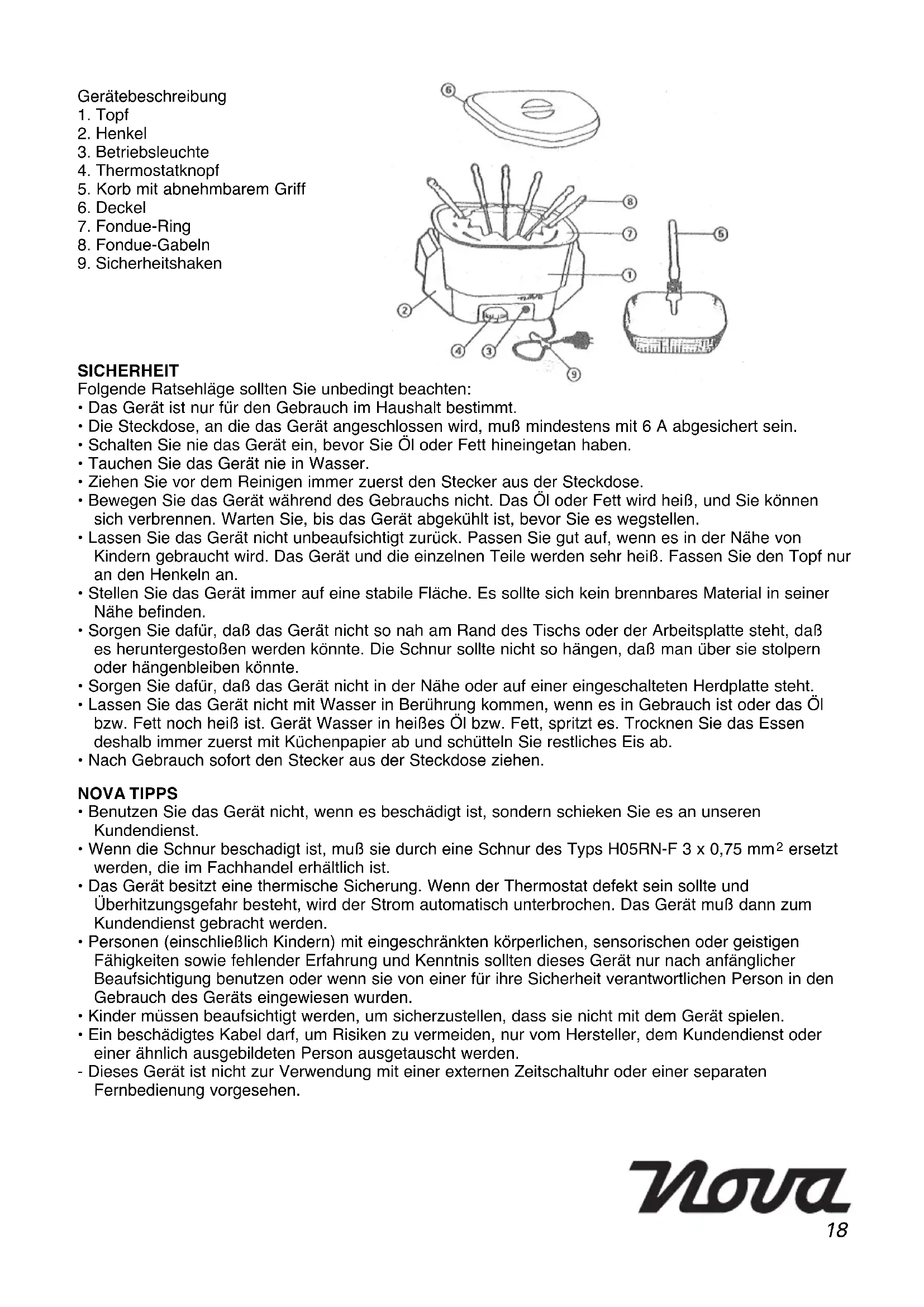 - Nach Gebrauch sofort den Stecker aus der Steckdose ziehen. NOVA TIPPS