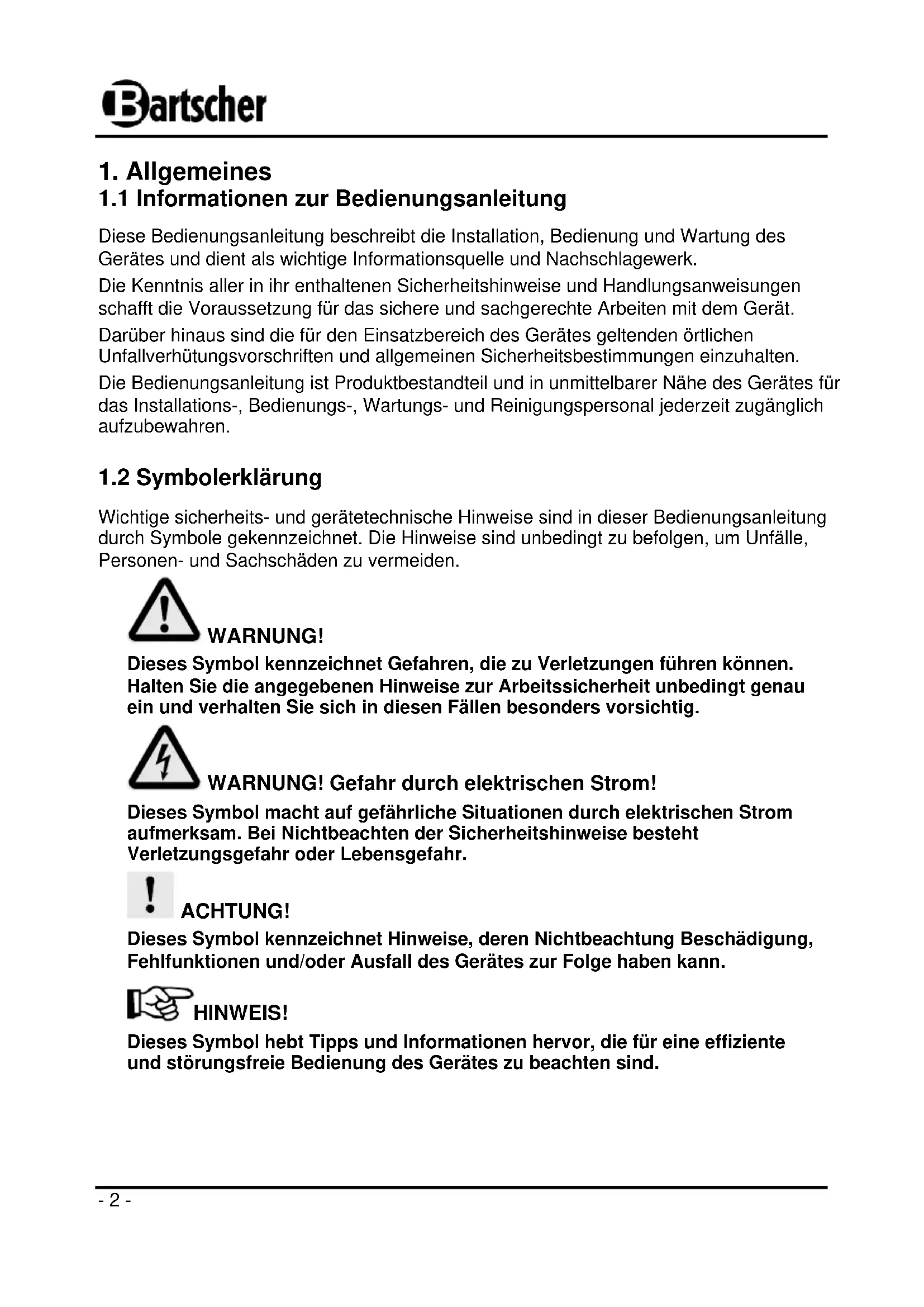 1.1 Informationen zur Bedienungsanleitung 2