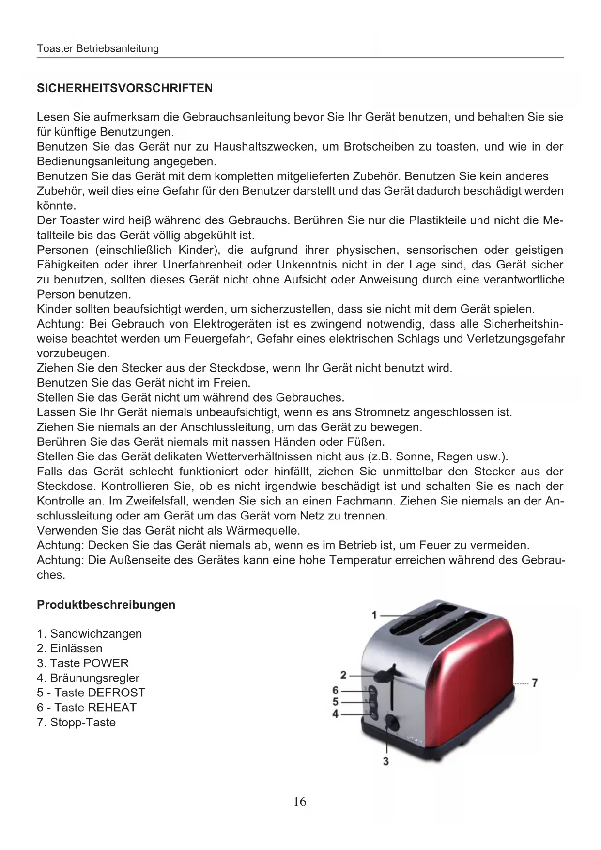 TOASTER-BETRIEBSANLEITUNG