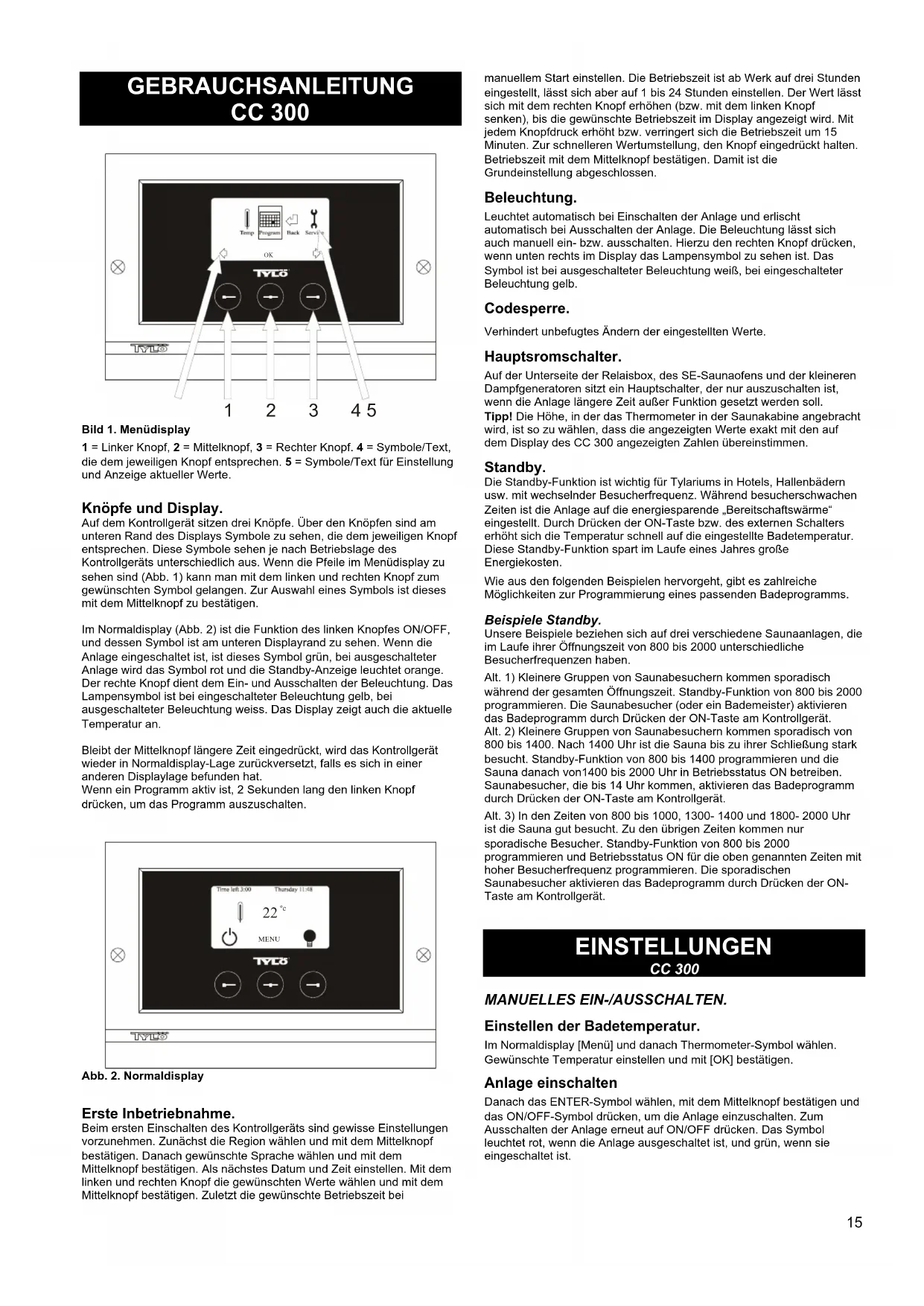 BEDIENUNGSANLEITUNG CC300T Tylö
