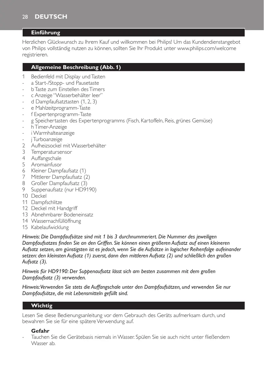 HD9190/30 - Elektrischer Dampfgarer PHILIPS - Kostenlose Bedienungsanleitung