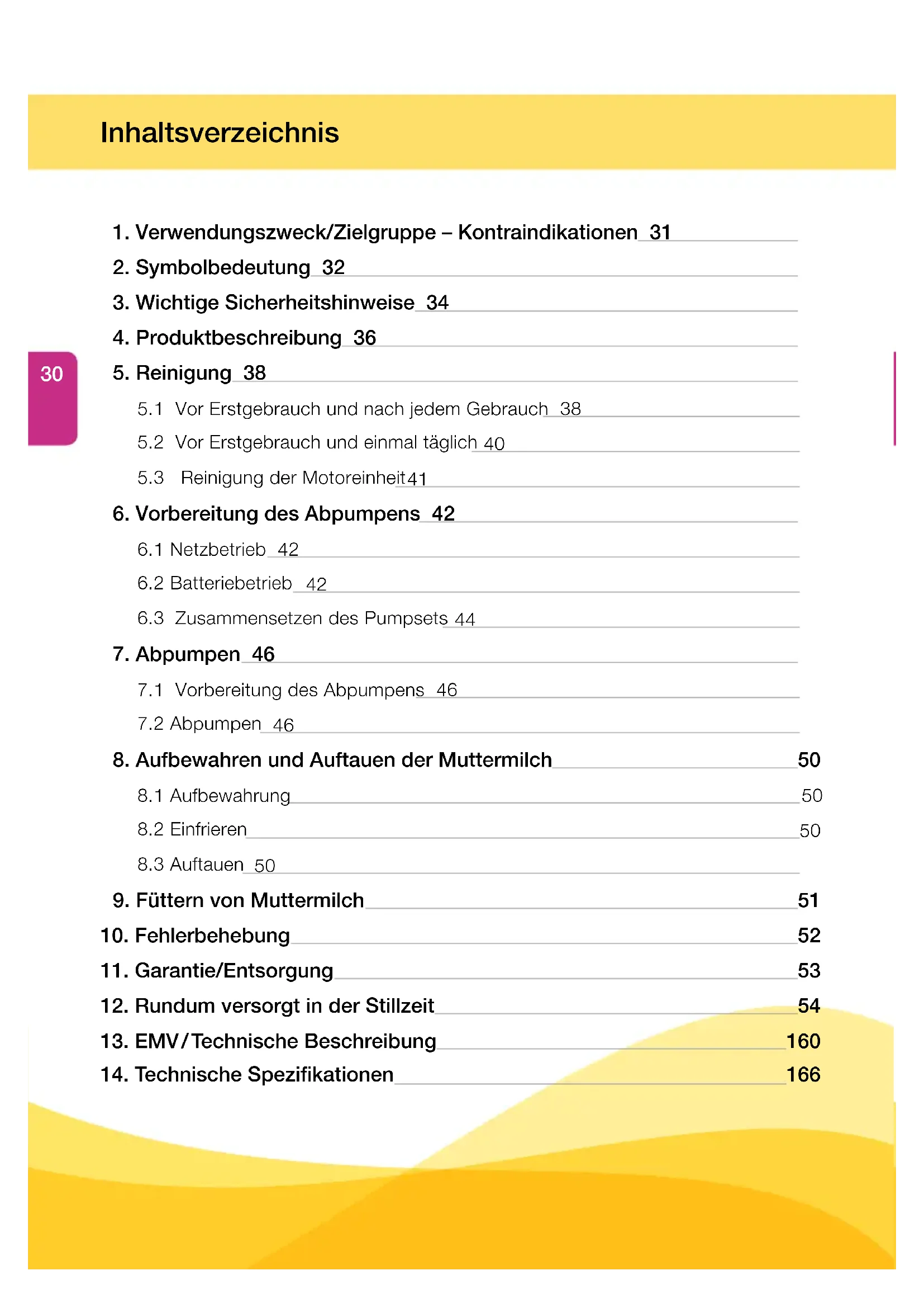 30Verwendungszweck und Indikationen für Milchpumpen Milchpumpen dienen dazu, dass stillende Frauen im Krankenhaus oder zu Hause Muttermilch abpumpen können. Milchpumpen sind hilfreich, wenn die Symptome eines Milchstaus durch Abpumpen der Milch gelindert werden sollen. Im Fall einer Brustdrüsenentzündung (Mastitis) unterstützen Milchpumpen den Heilungsprozess durch Entnahme der Milch aus der betroffenen Brust. Milchpumpen sind dazu geeignet, wunden oder rissigen Brustwarzen Linderung zu verschaffen sowie Flach- oder Hohlwarzen hervorzuholen. Überdies bieten Milchpumpen Müttern die Möglich- keit, Babys mit Muttermilch zu füttern, die wegen verschiedener Probleme, wie Saug- position, Gaumenspalten oder Frühgeburt, nicht direkt an der Brust trinken können. Patientinnenzielgruppe/Benutzerinnen Jugendliche oder erwachsene stillende Frauen. Viele Frauen nden es praktisch, oft sogar unerlässlich, eine Milchpumpe zum Abpumpen und Aufbewahren der Muttermilch zu verwenden, wenn sie wieder zu arbeiten beginnen, sich auf einer Reise benden oder aus anderen Gründen von ihrem Baby getrennt sind. Sie sind häug erfreut, wenn sie erfahren, dass Milchpumpen als Ergänzung zum Stillen an der Brust eingesetzt werden können und dass die Funktionsweise gewisser Pumpen das natürliche Saugen des Babys imitiert. Kontraindikationen Für die Milchpumpe Mini Electric gibt es keine bekannten Kontraindikationen.
