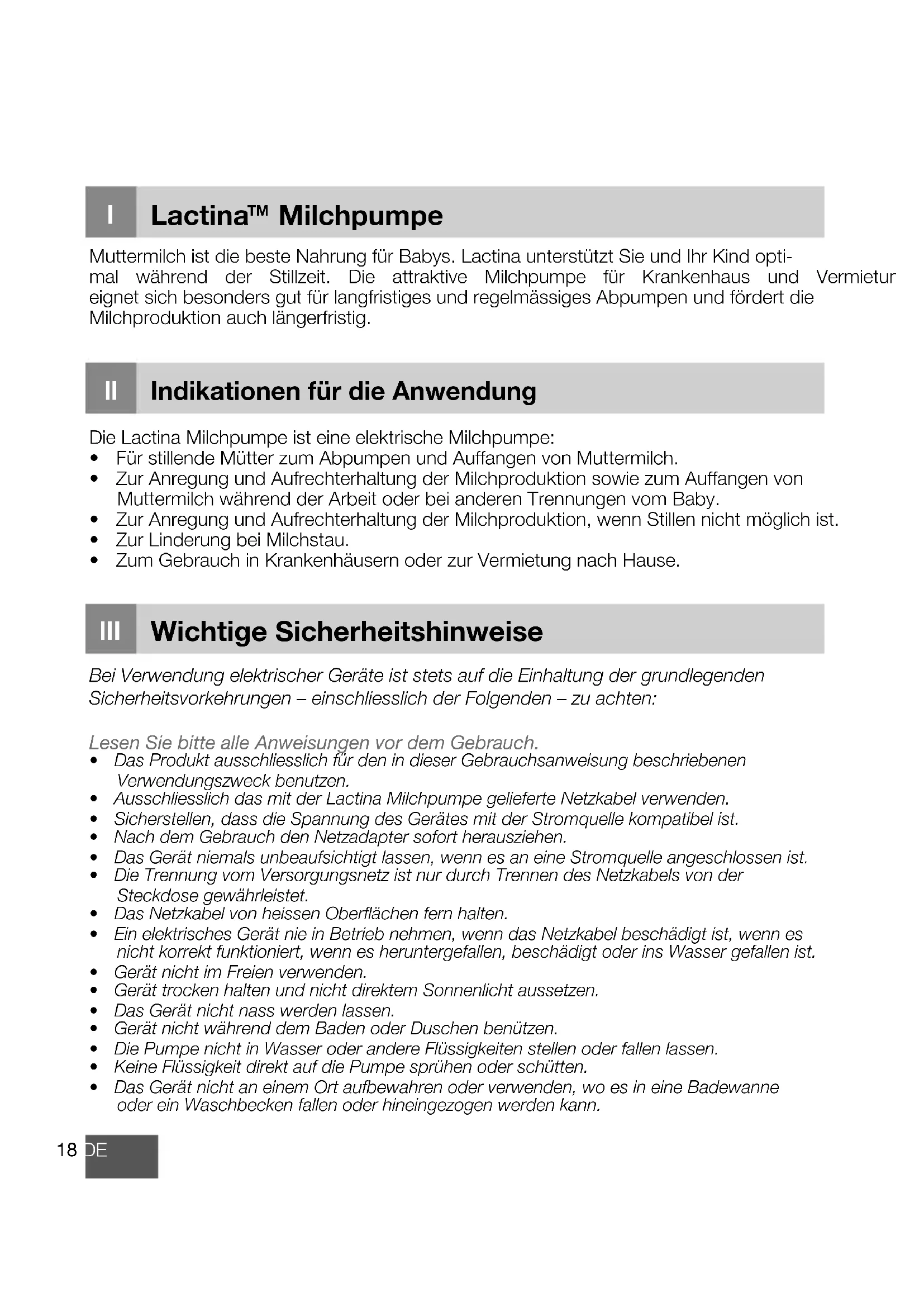 o18 DE Wichtige Sicherheitshinweise lII Lactina