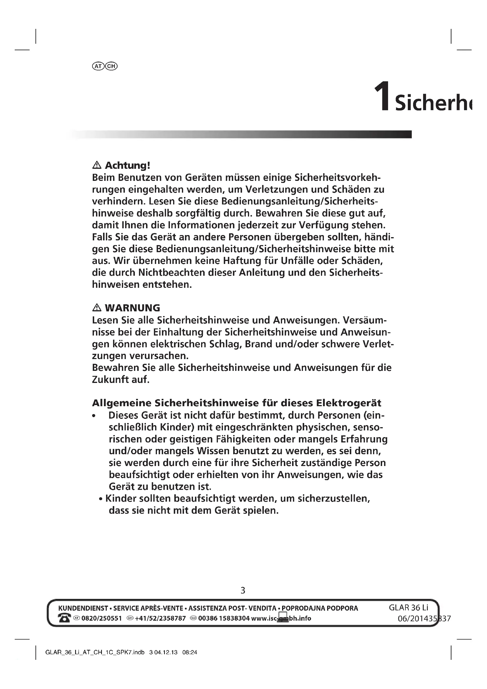 BEDIENUNGSANLEITUNG GLAR 36 Li Gardenline