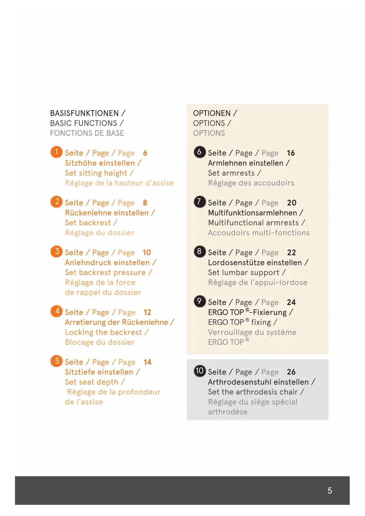 10Seite / Page / Page 26 Arthrodesenstuhl einstellen / Set the arthrodesis chair / Reglage du siege spécial arthrodese
