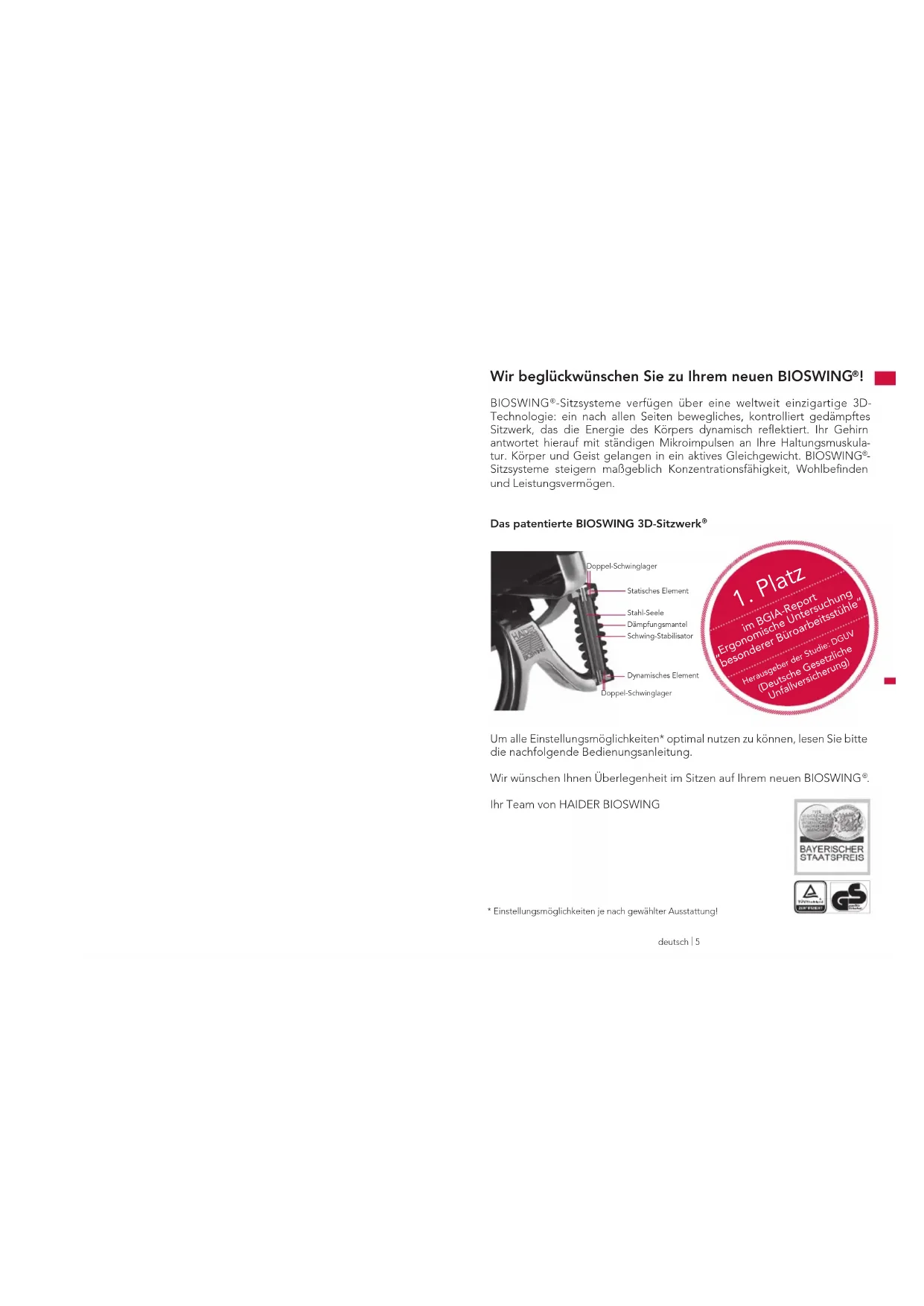 Wir wünschen Ihnen Überlegenheit im Sitzen auf Ihrem neuen BIOSWING ^® .