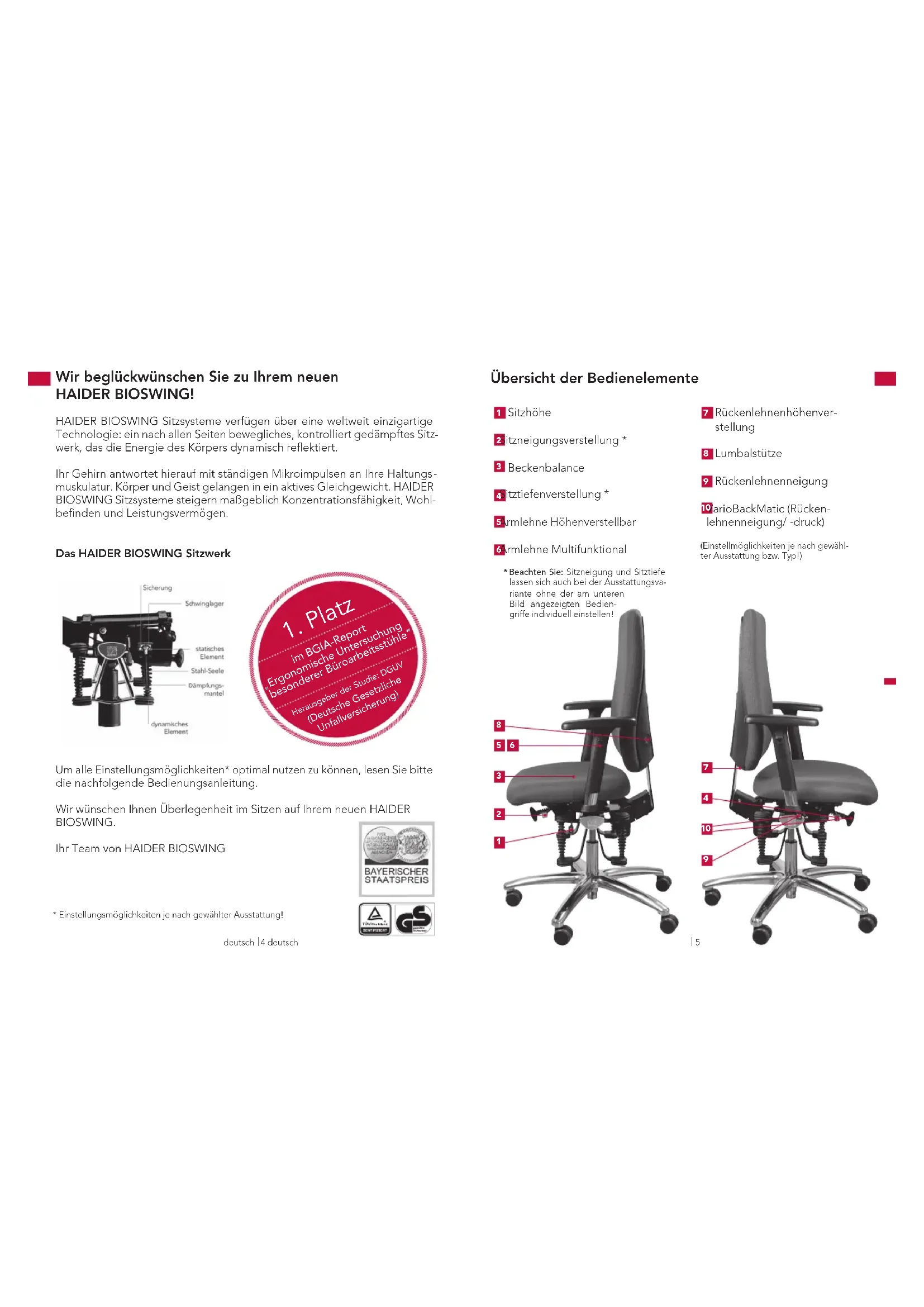 Laden Sie die Anleitung für Ihr Bürostuhl kostenlos im PDF-Format! Finden Sie Ihr Handbuch 260 iQ V - Bioswing und nehmen Sie Ihr elektronisches Gerät wieder in die Hand. Auf dieser Seite sind alle Dokumente veröffentlicht, die für die Verwendung Ihres Geräts notwendig sind. 260 iQ V von der Marke Bioswing.
