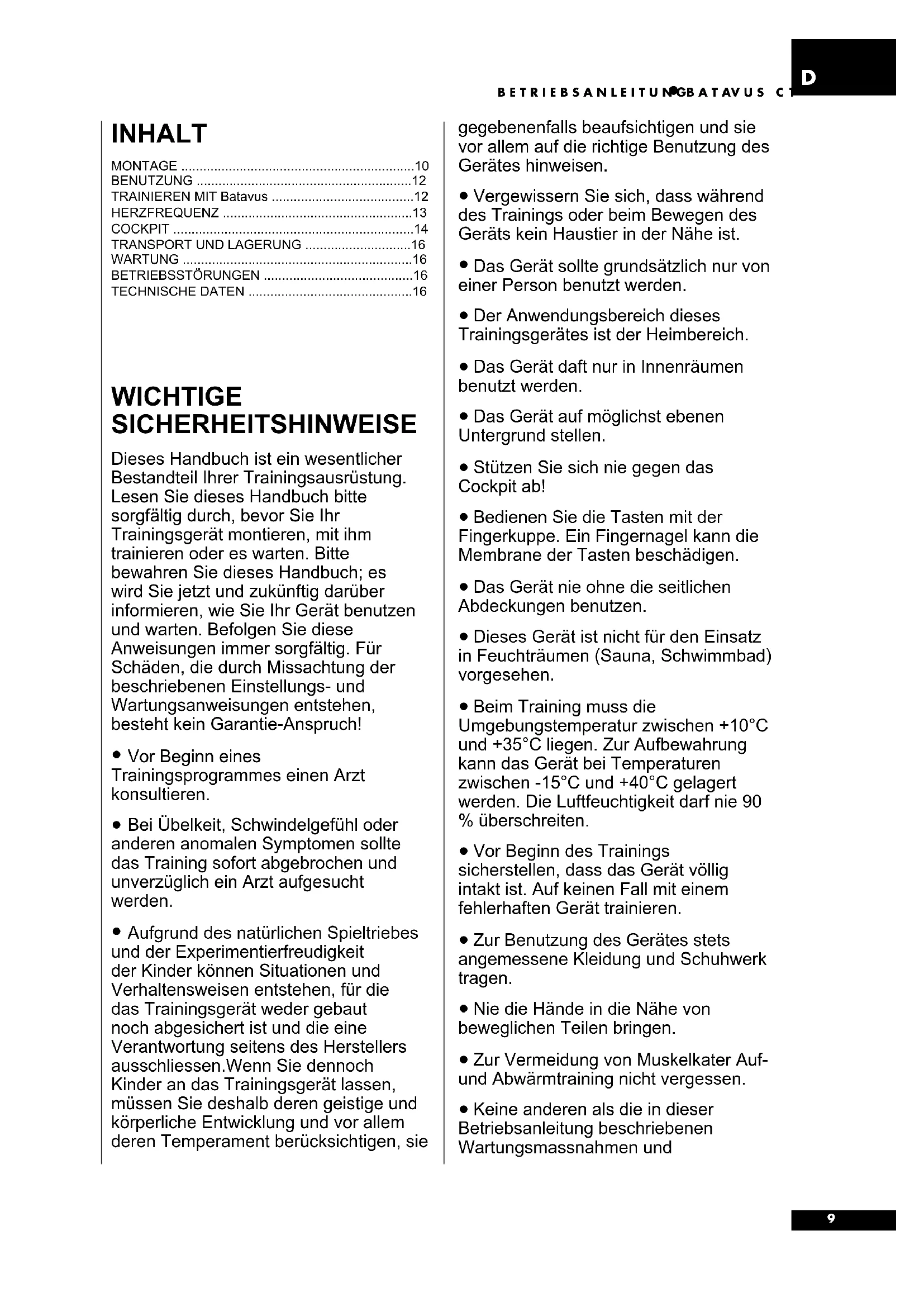 - Vor Beginn des Trainings sicherstellen, dass das Gerät völlig intakt ist. Auf keinen Fall mit einem fehlerhaften Gerät trainieren.