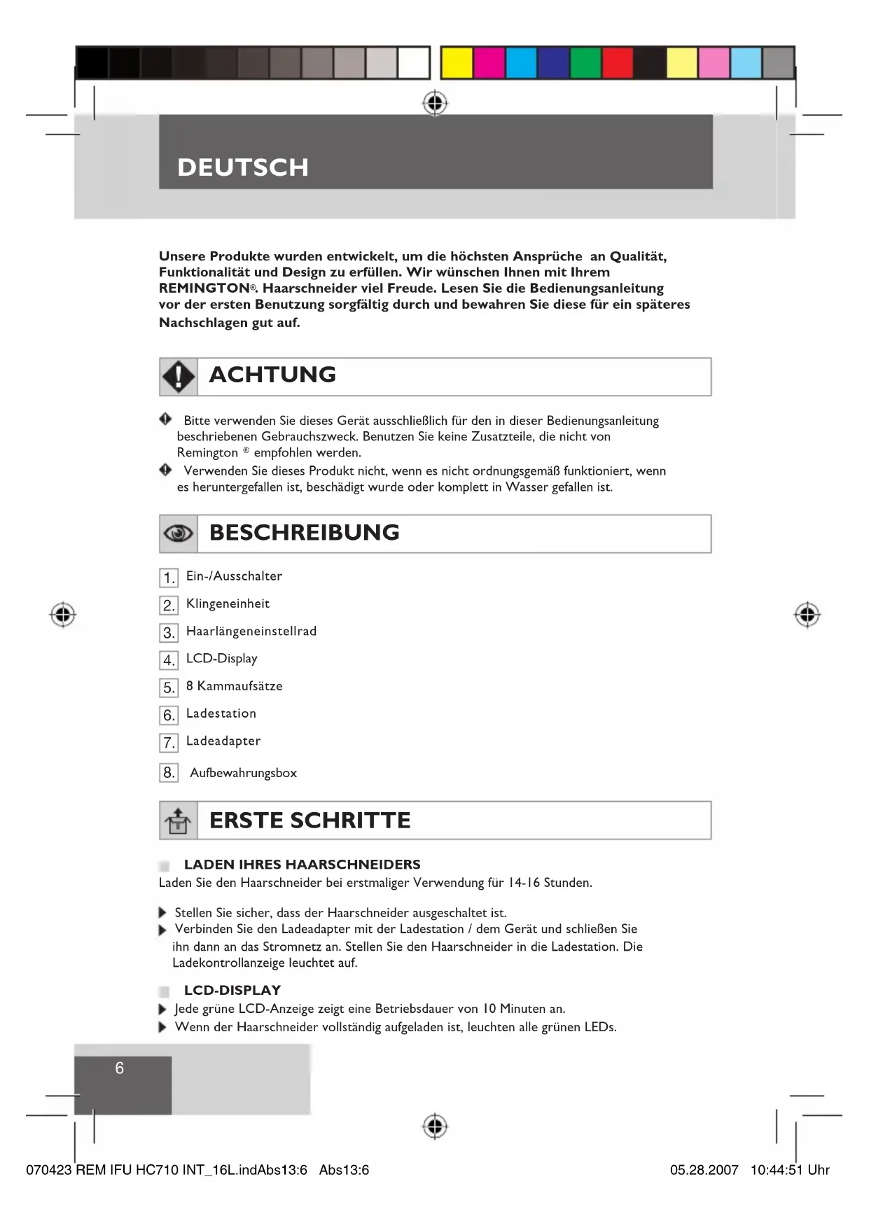 BEDIENUNGSANLEITUNG HC710 REMINGTON