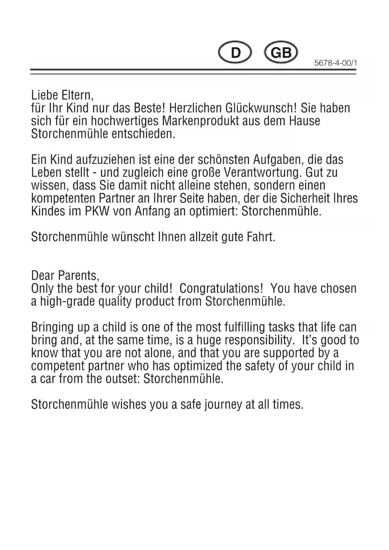 für ihr Kind nur das Beste! Herzlichen Glückwunsch! Sie haben sich für ein hochwertiges Markenprodukt aus dem Hause Storchenmühle entschieden.