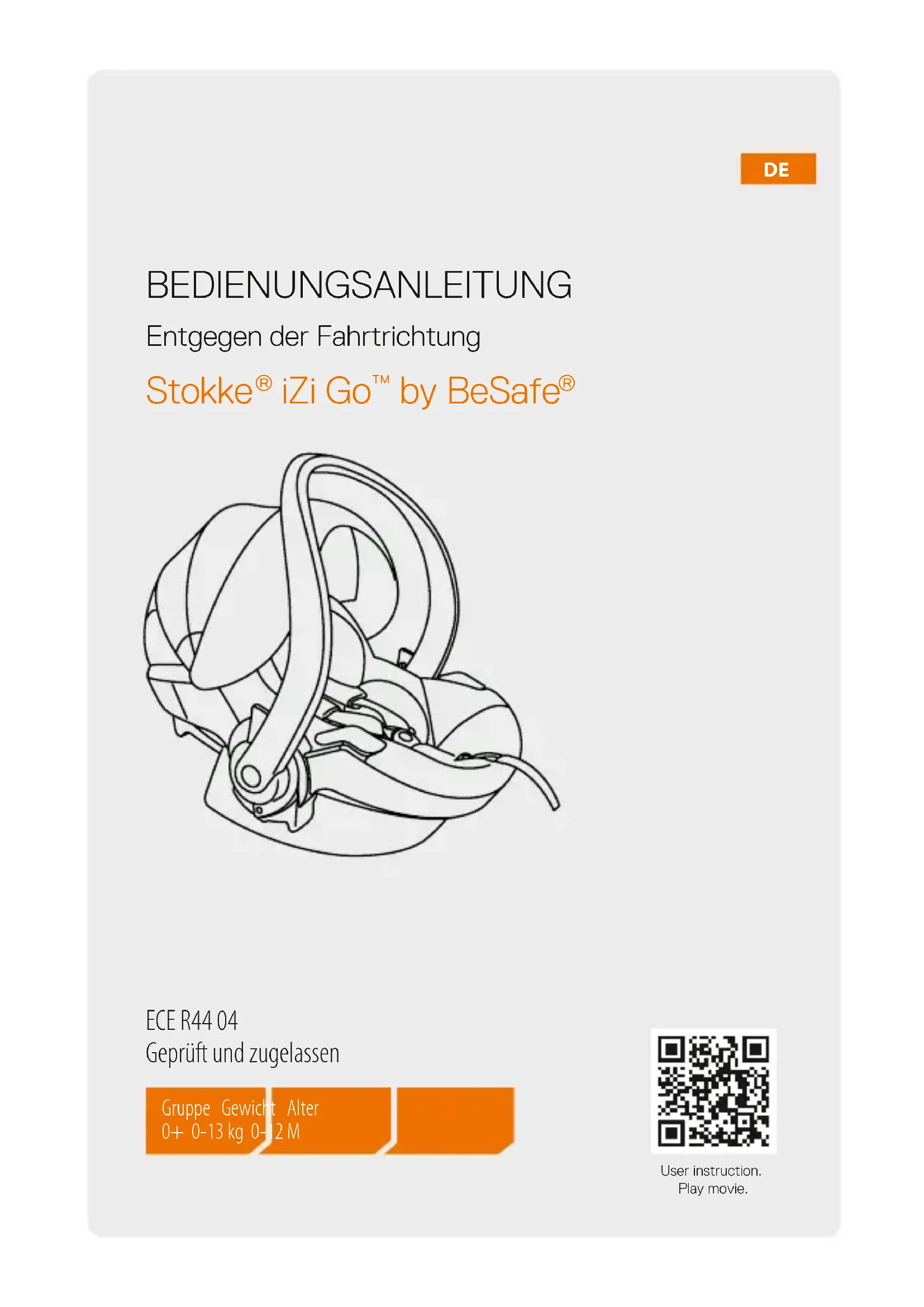 - Stokke® iZi Go™ by BeSafe® ist zugelassen für die Altersgruppe 0+, rückwärts gerichtet, 0-13 kg.