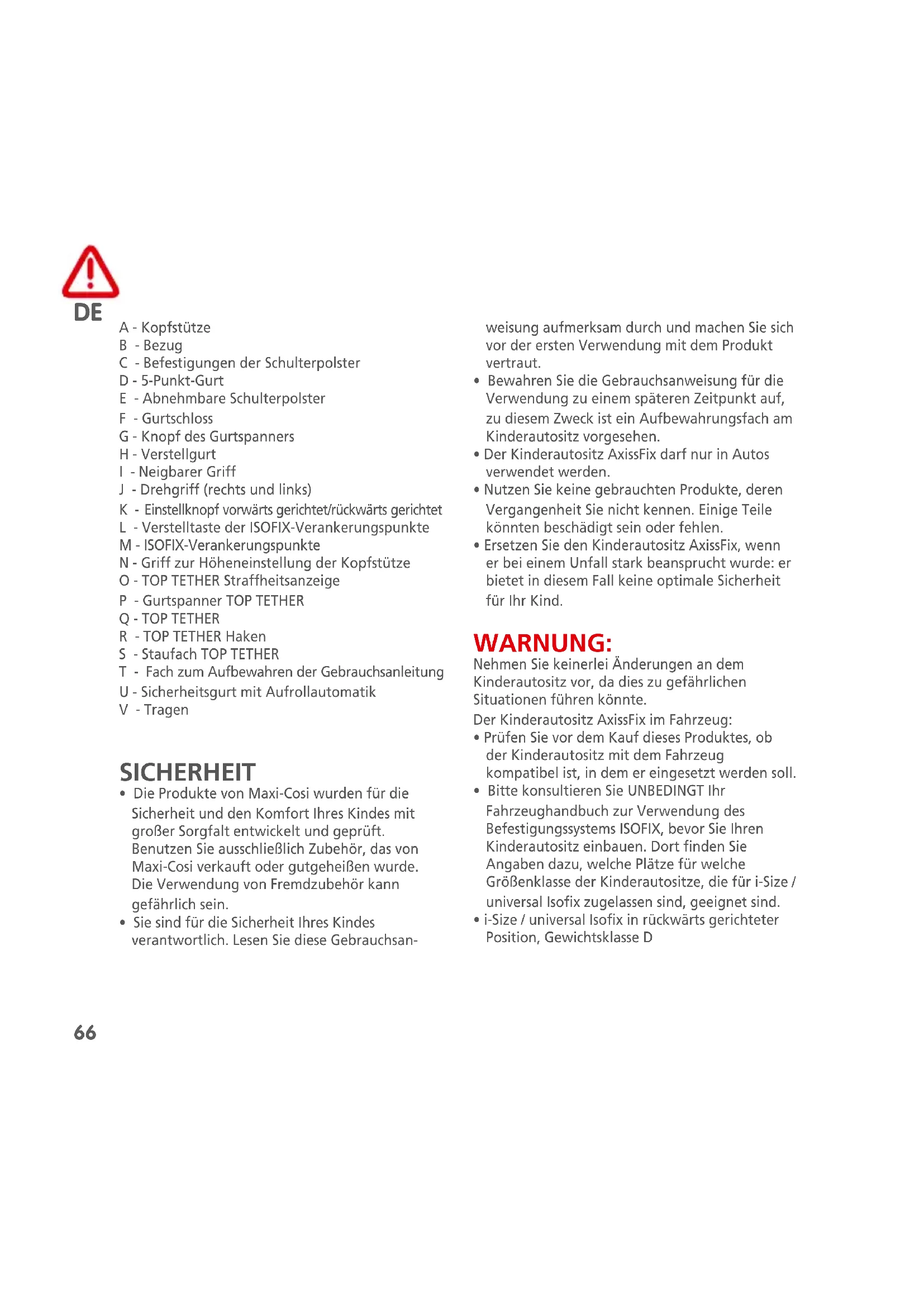 - Die Produkte von Maxi-Cosi wurden für die Sicherheit und den Komfort Ihres Kindes mit großer Sorgfalt entwickelt und geprüft. Benutzen Sie ausschließlich Zubehör, das von Maxi-Cosi verkauft oder gutgeheißen wurde. Die Verwendung von Fremdzubehör kann gefährlich sein.