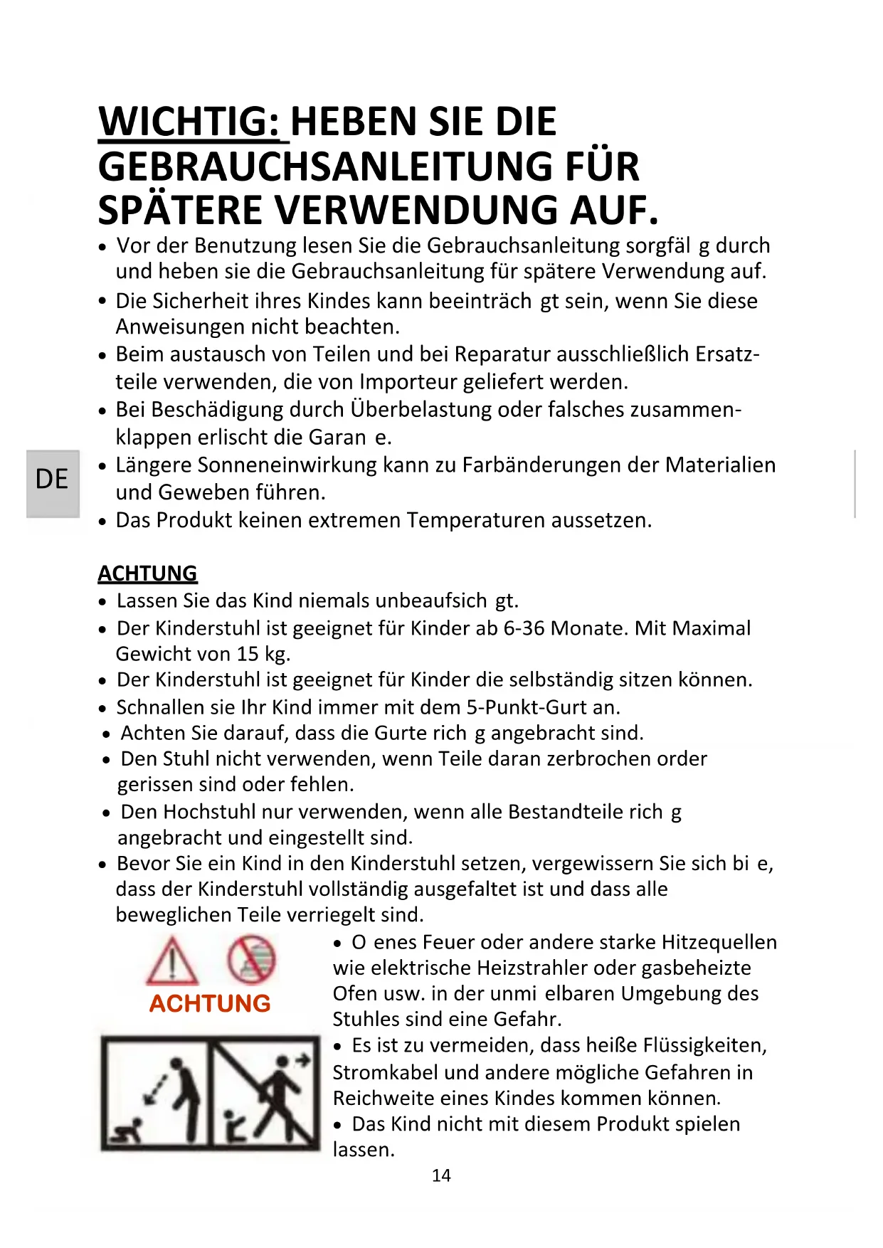 - Die Sicherheit ihres Kindes kann beeinträch gt sein, wenn Sie diese Anweisungen nicht beachten.