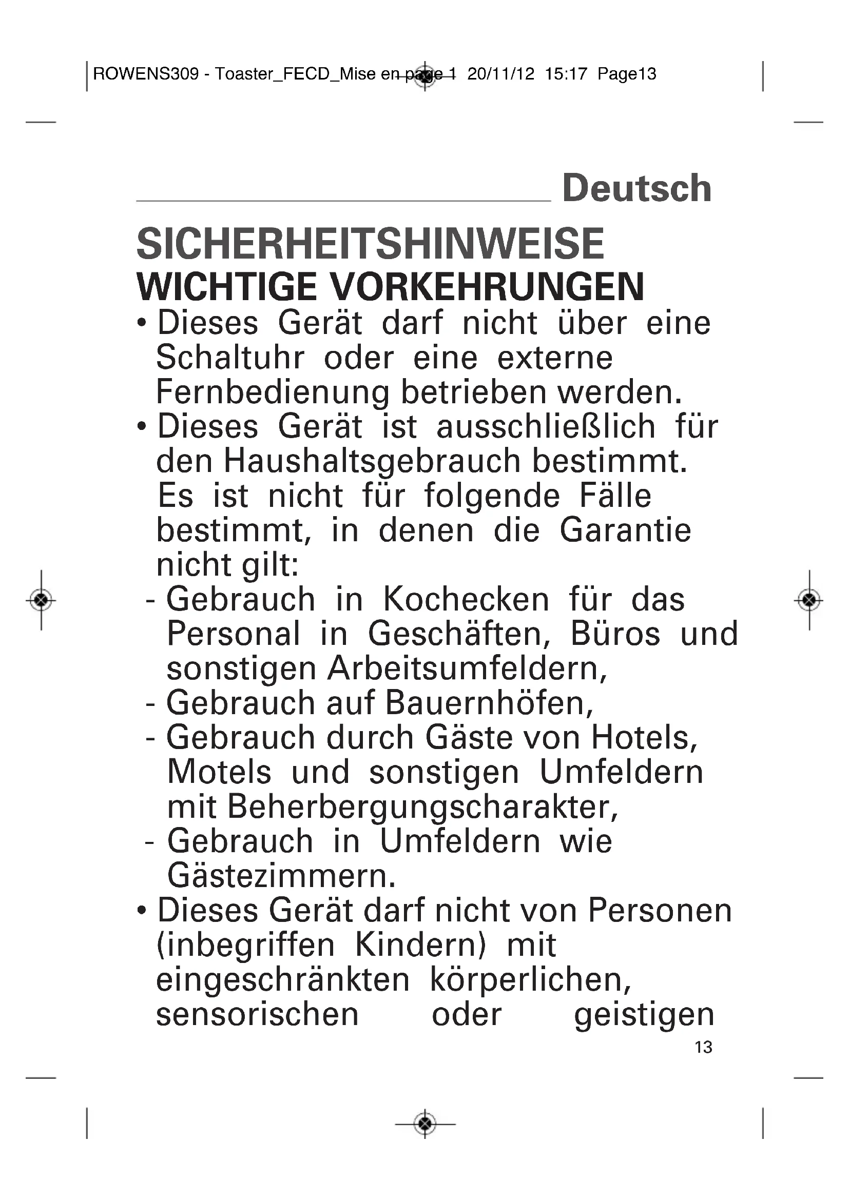 Laden Sie die Anleitung für Ihr Toaster kostenlos im PDF-Format! Finden Sie Ihr Handbuch FECD TL681130 - ROWENTA und nehmen Sie Ihr elektronisches Gerät wieder in die Hand. Auf dieser Seite sind alle Dokumente veröffentlicht, die für die Verwendung Ihres Geräts notwendig sind. FECD TL681130 von der Marke ROWENTA.