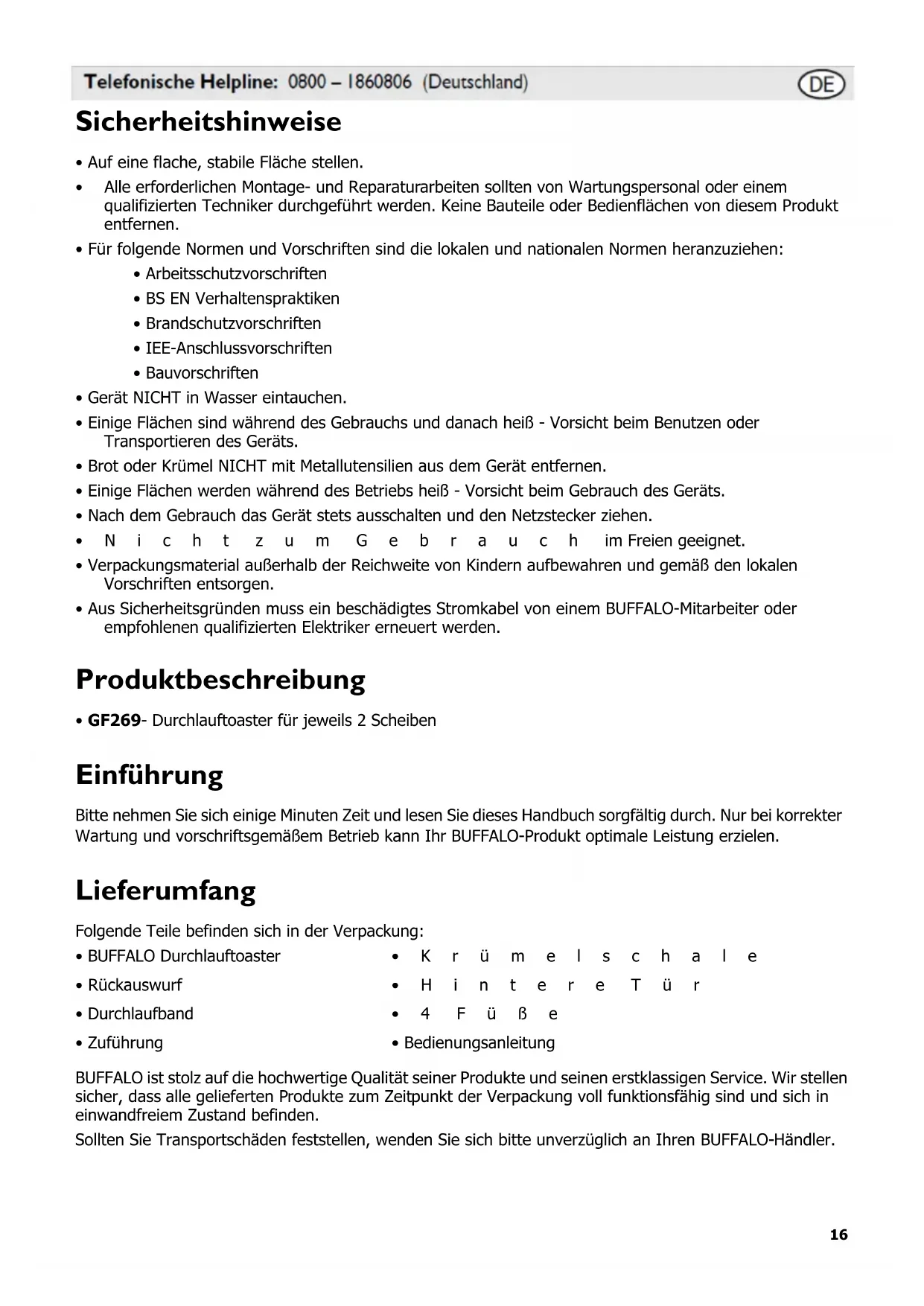 BEDIENUNGSANLEITUNG GF269 BUFFALO