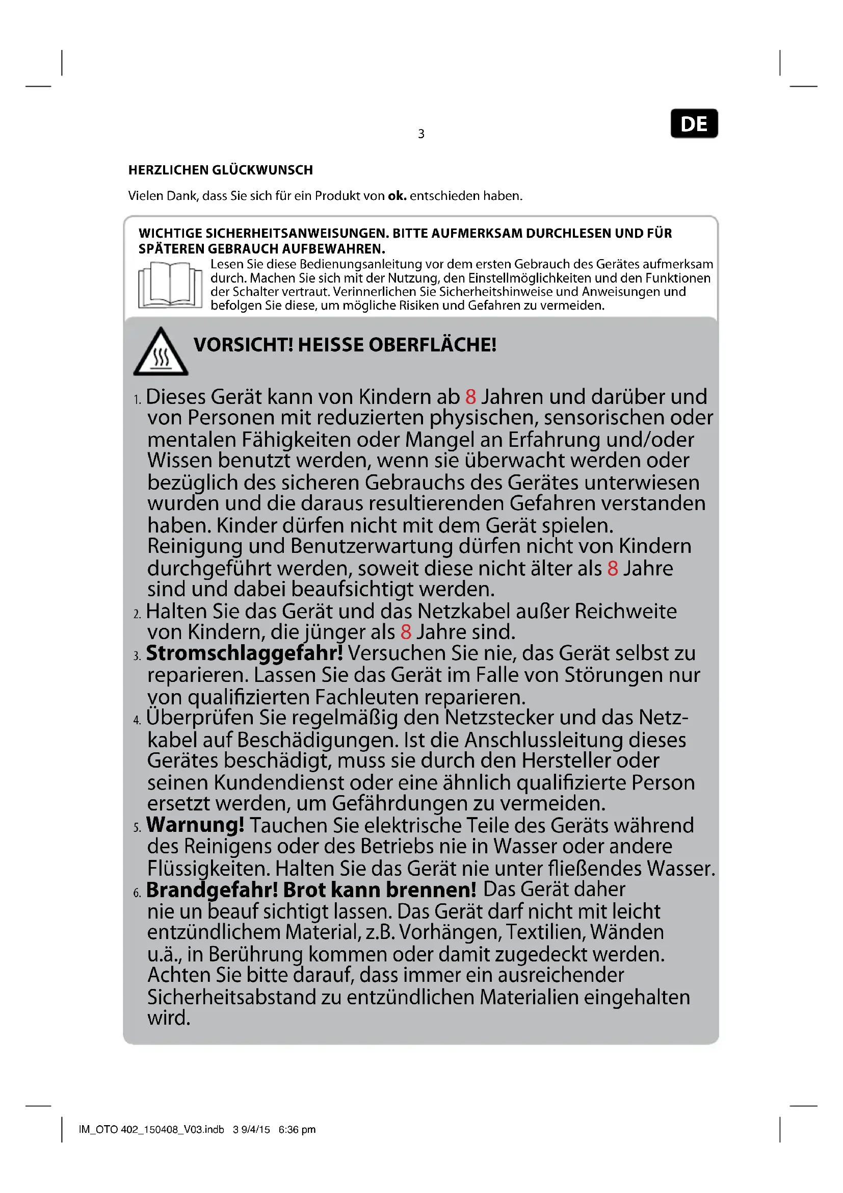 Vielen Dank, dass Sie sich für ein Produkt von ok. entschieden haben.