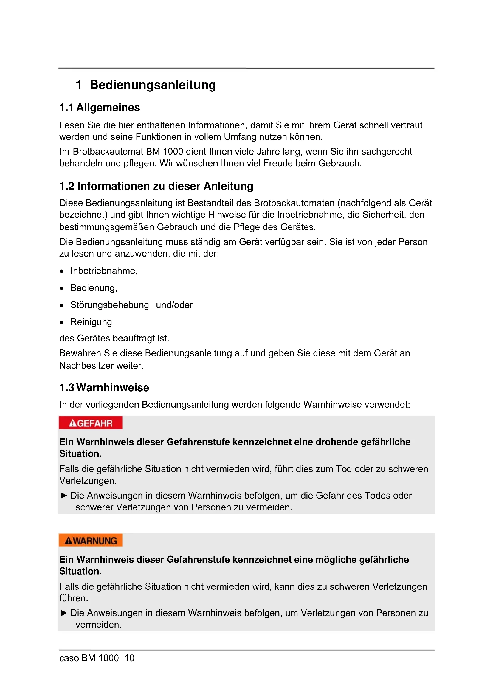 BM1000 - Brotmaschine CASO - Kostenlose Bedienungsanleitung