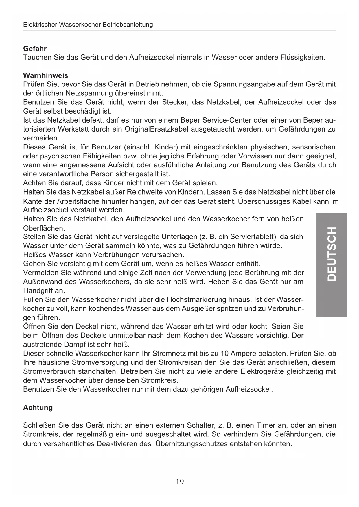 90.840 - Wasserkocher Beper - Kostenlose Bedienungsanleitung