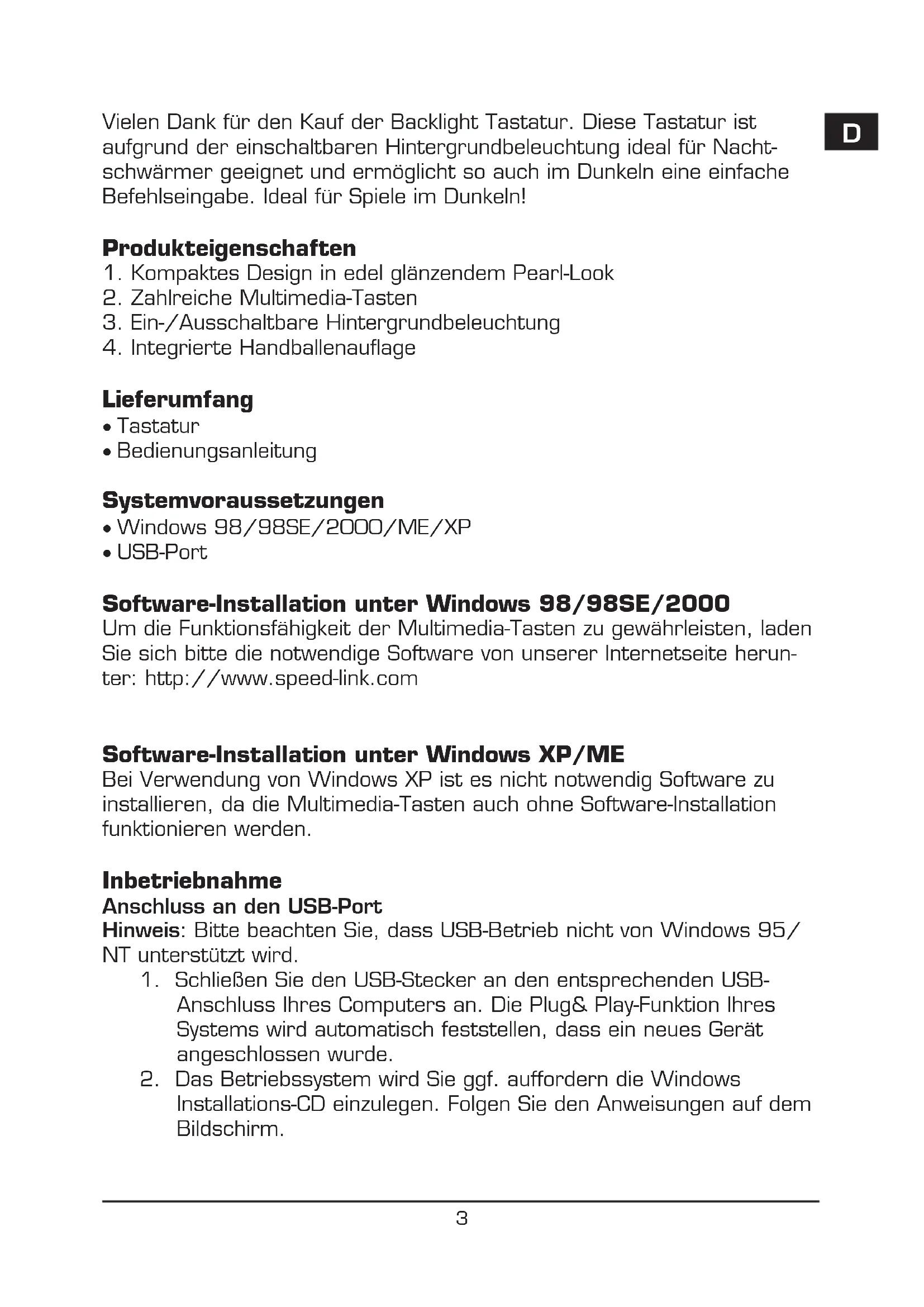 BEDIENUNGSANLEITUNG Backlight SL6451 Speedlink