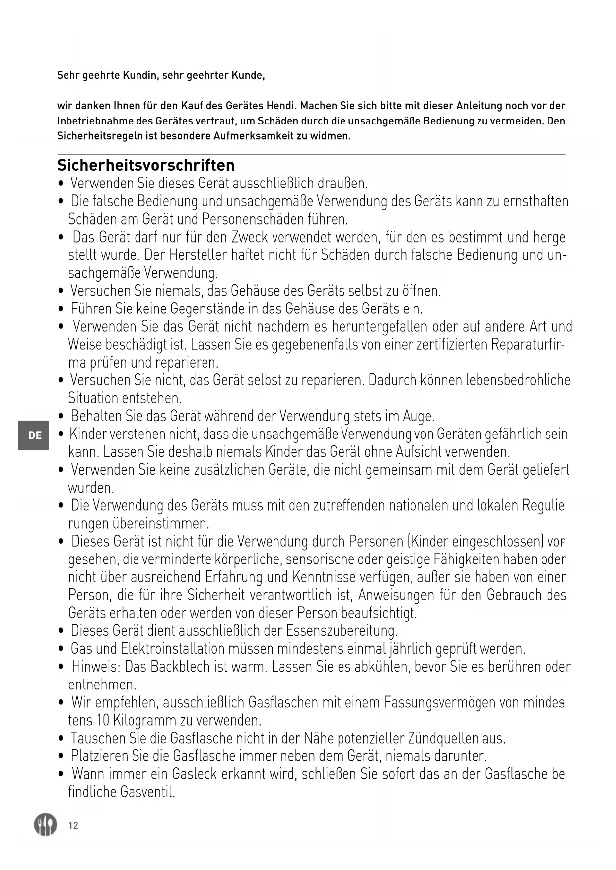 - Dieses Gerät ist für Propan- und Butangas geeignet.