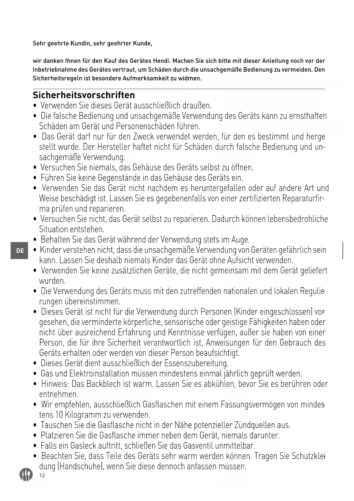 - Dieses Gerät ist für Propan- und Butangas geeignet.